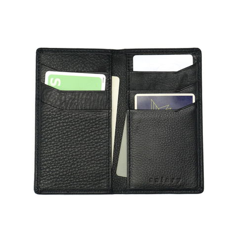 エレガントで豊かな表情が楽しめる『Shrink Leather』をふんだんに使用したカードケース。薄さ重視でコンパクトに設計されたこちらは、小銭は持たなくてもカードは持ち運びたいというシーンに最適。カード入れは外側への飛び出しを防ぐため、端に向かってレザー面積を増やす仕様になっている等、シンプルかつ気の利いたデザインです。