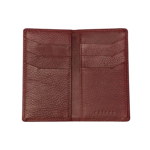 本体レザー表面のシワは、一般的な型押し加工によるものではなく、染色工程の後に熱を加えて革全体を縮めたことで生じたもの。ゆえに自然な風合と独特の趣きがあります。さらに時間と手間をかけて鞣すことで、ソフトで手に吸い付くような肌触りとなっています。革を極限まで薄くすいているため見た目以上に軽く、機能面も抜かりのない仕上がりとなっています。