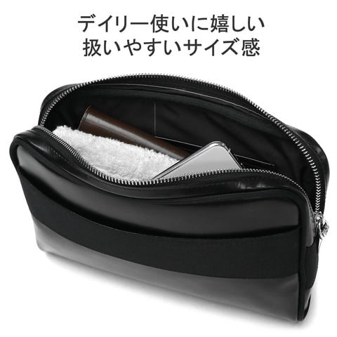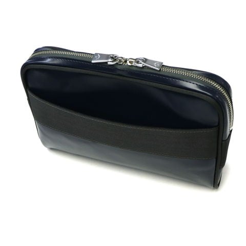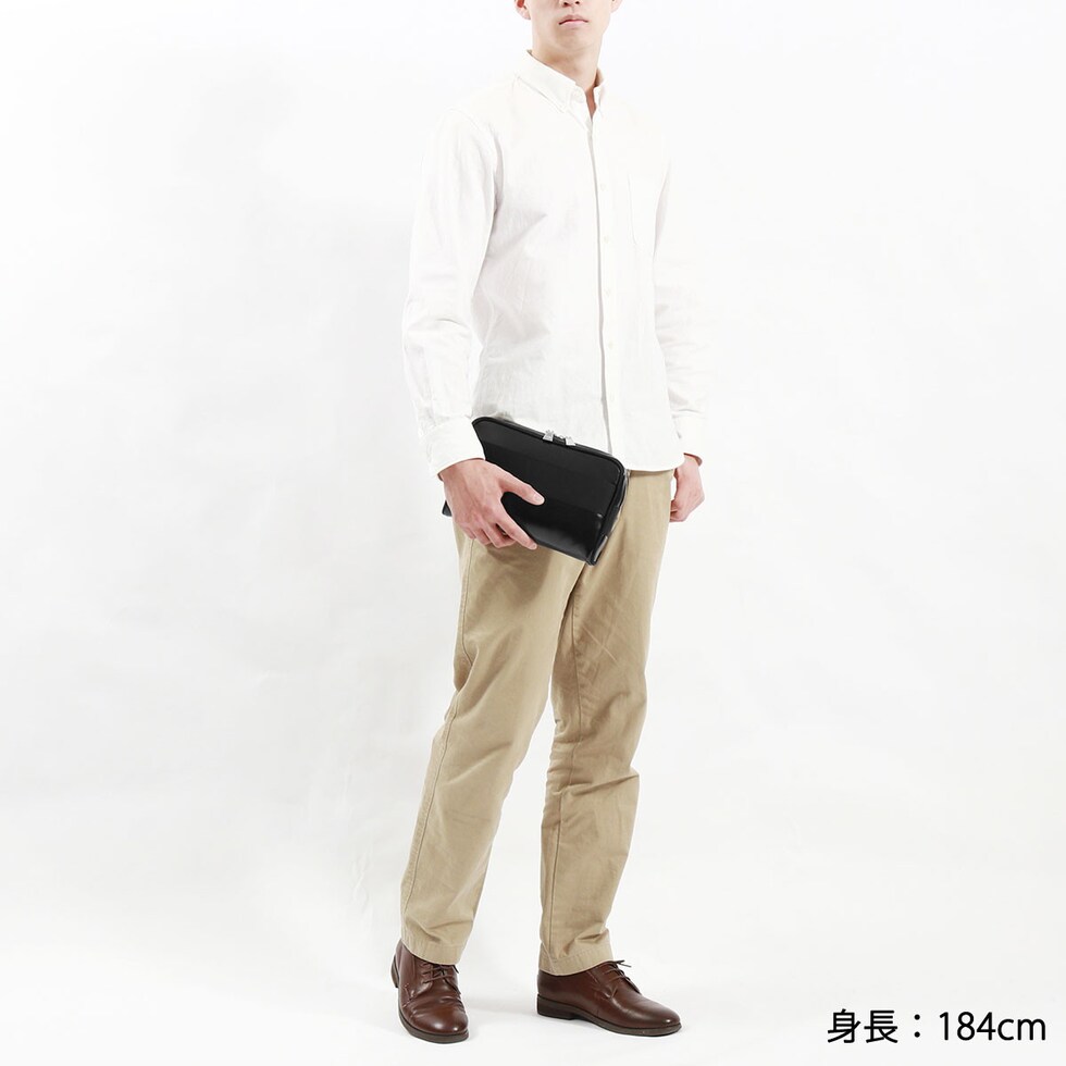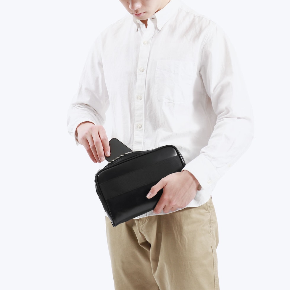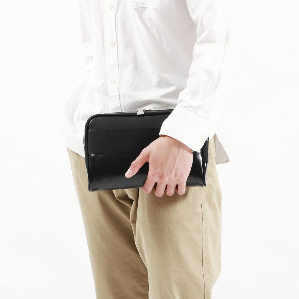 リアルレザーに特殊加工を施すことで、革本来のしなやかさを残しつつ機能性も兼ね備えた「エフ-フィルムレザー」のクラッチバッグ。表面に傷がつきにくく、耐水性・耐熱性なども備えたタフな仕上がりが魅力です。またドレス過ぎず、カジュアル過ぎず、革の特性からスニーカースタイルにもマッチするこだわりのアイテムは男女問わず使いやすいデザインに仕上がっています。