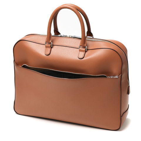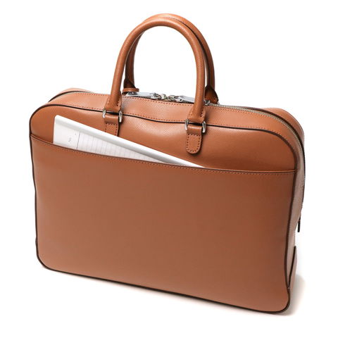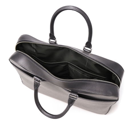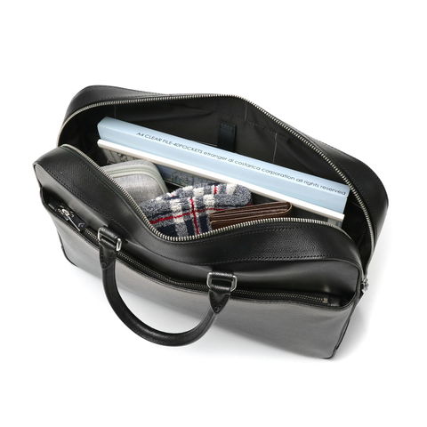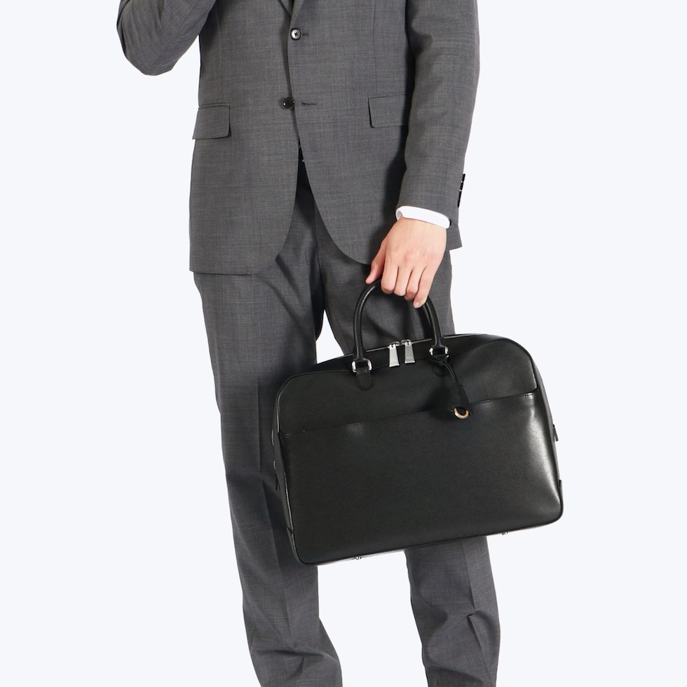 革本来のしなやかさと、奥ゆかしいシボの表情、優れた耐水・耐熱性を兼ね備えた特別なブリーフケース。これらは、惜しまない手間をかけた特殊加工によるもの。レザーにありがちな小傷がないのも特徴で、ゆえに1枚の革を分割することなく贅沢に使用でき、高級感のあるテイストに仕上がっています。
