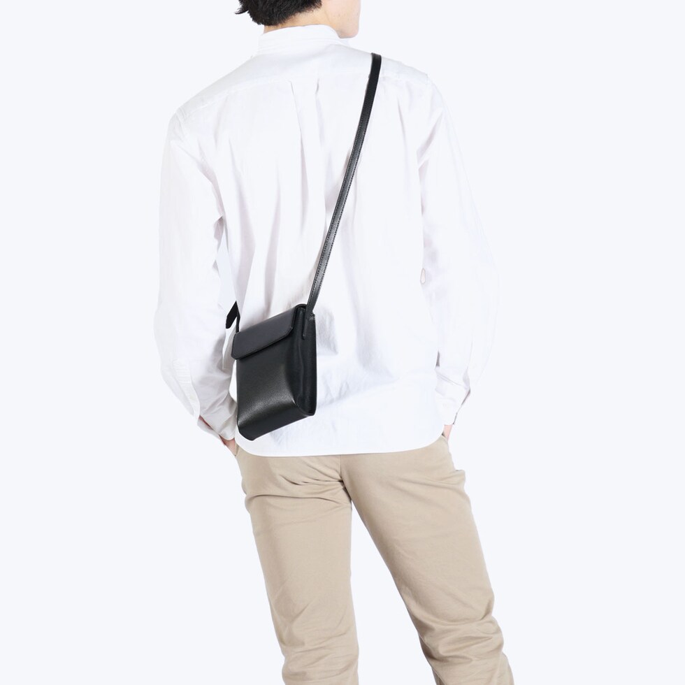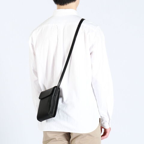 革本来のしなやかさと、奥ゆかしいシボの表情、優れた耐水・耐熱性を兼ね備えた特別なショルダーバッグ。これらは、惜しまない手間をかけた特殊加工によるものです。折り紙を折るように丁寧に折り曲げて仕上げられたボディは、フラップ部分を除いて1枚革で作られており、シンプルかつ美しいデザインとなっております。