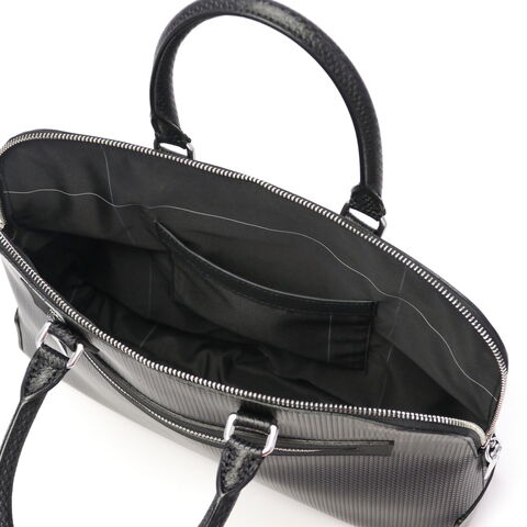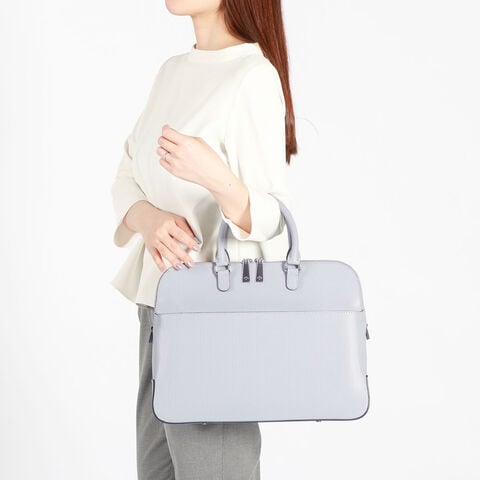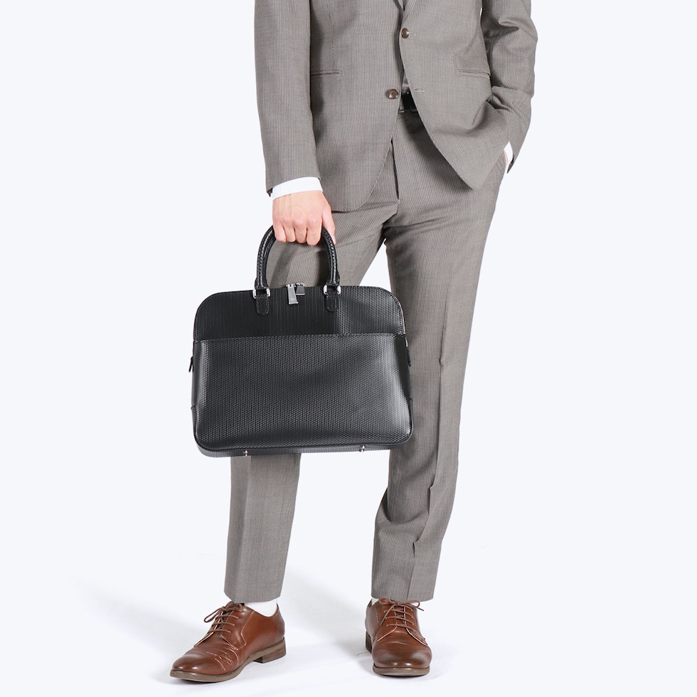 革本来のしなやかさと強さに、テクノロジーを加えた新感覚のブリーフケース。耐水性、耐熱性、耐擦傷性が優れたフィルムを1枚1枚貼り付けることで、革でありながら柄や発色が良く、どんな装いにもさり気なく溶けこみます。角の丸みを減らしたフォルムは、よりスタイリッシュな印象にアップデート。デザインの個性と素材の個性を調和させつつ、機能性も抜かりなく仕上げています。