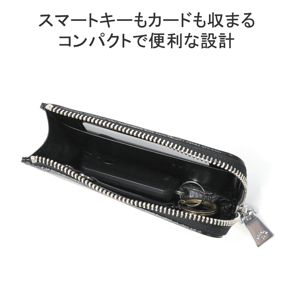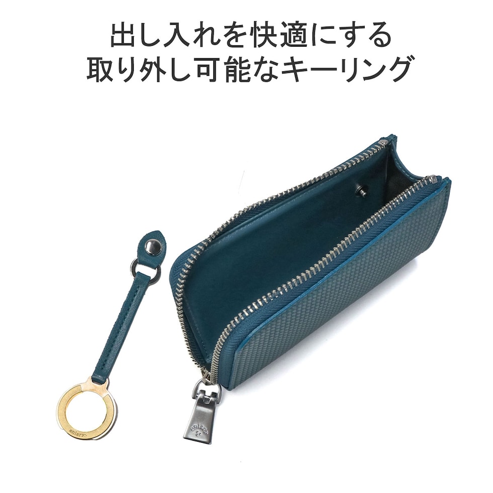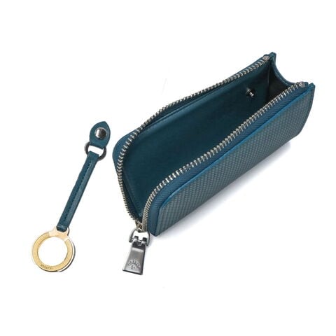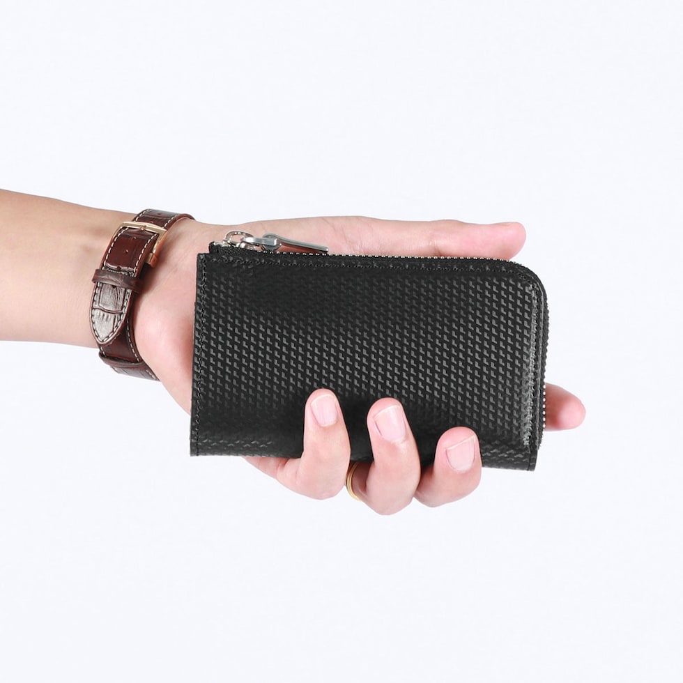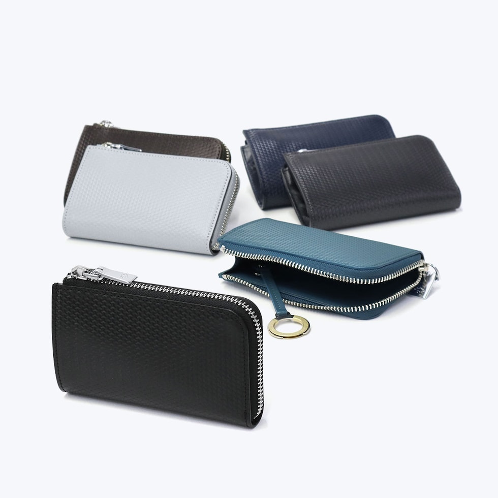 革本来のしなやかさと強さに、テクノロジーを加えた新感覚のキーケース。耐水性、耐熱性、耐擦傷性が優れたフィルムを1枚1枚貼り付けることで、革でありながら柄や発色が良く、どんな装いにもさり気なく溶けこみます。本体は大きめサイズで車のスマートキーをきちんと収納でき、内側にポケットを備えているのでカードキーにも対応。シンプルな造りでどんな鍵でもスマートに持ち歩けるアイテムです。