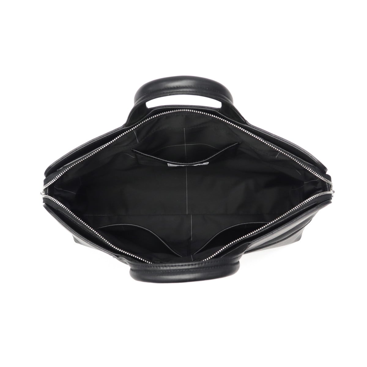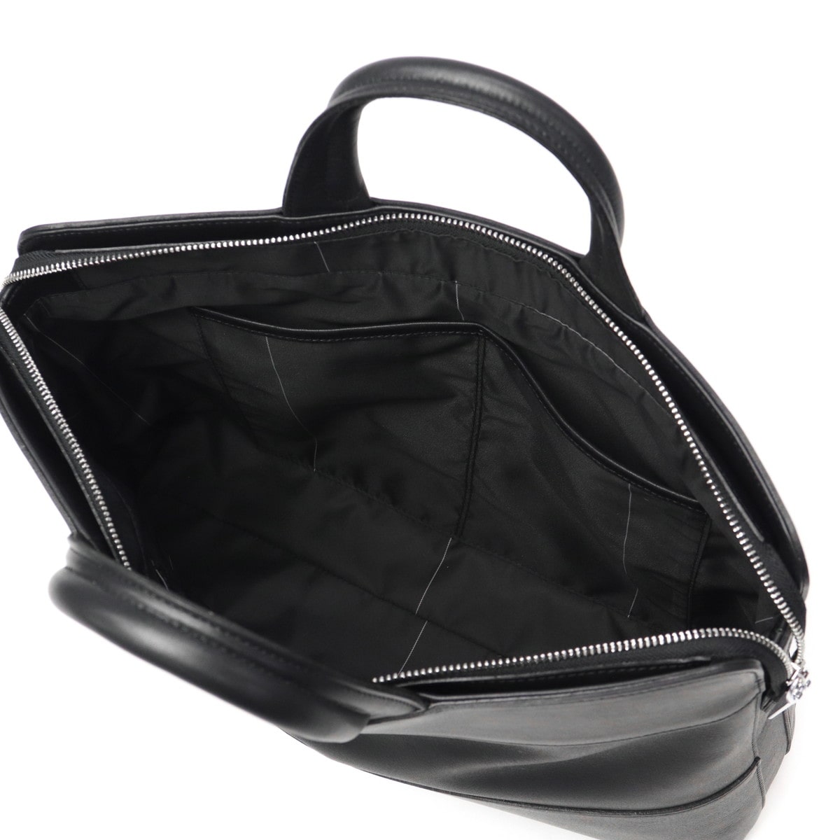 細部への気配りと美しいバランスが魅力のブリーフバッグです。角の部分はさりげなくラウンドに仕上げ、フロントのファスナーポケットには両サイドに小さな目隠しレザーを配置。これにより、ファスナー特有のごちゃごちゃ感を軽減し、洗練された印象を与えています。コンセプトは"固さと柔らかさ”。土台とサイド部分はしっかりとした骨組みで構築しながら、上部のレザーは柔らかく仕上げることで、実用性とデザイン性を両立しました。