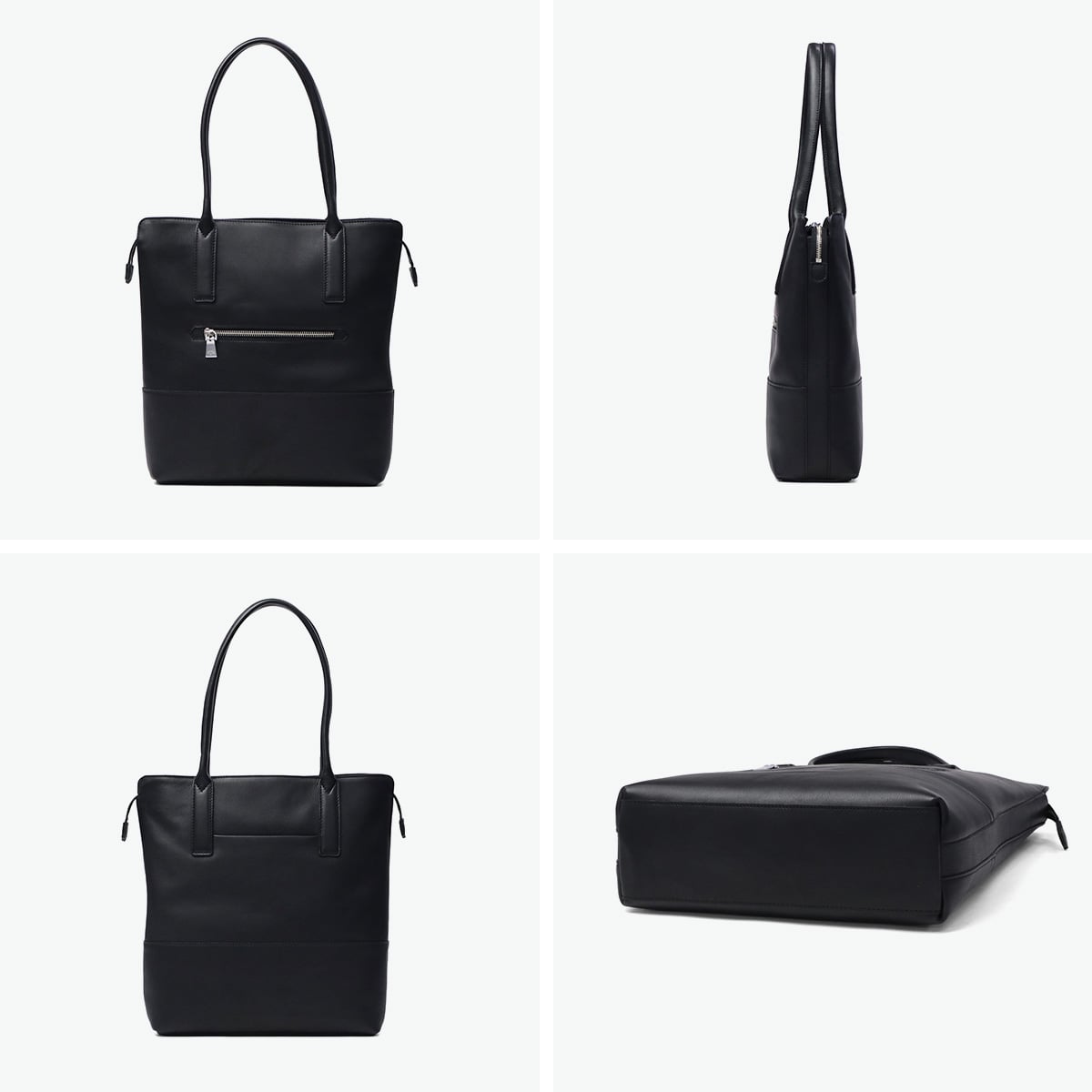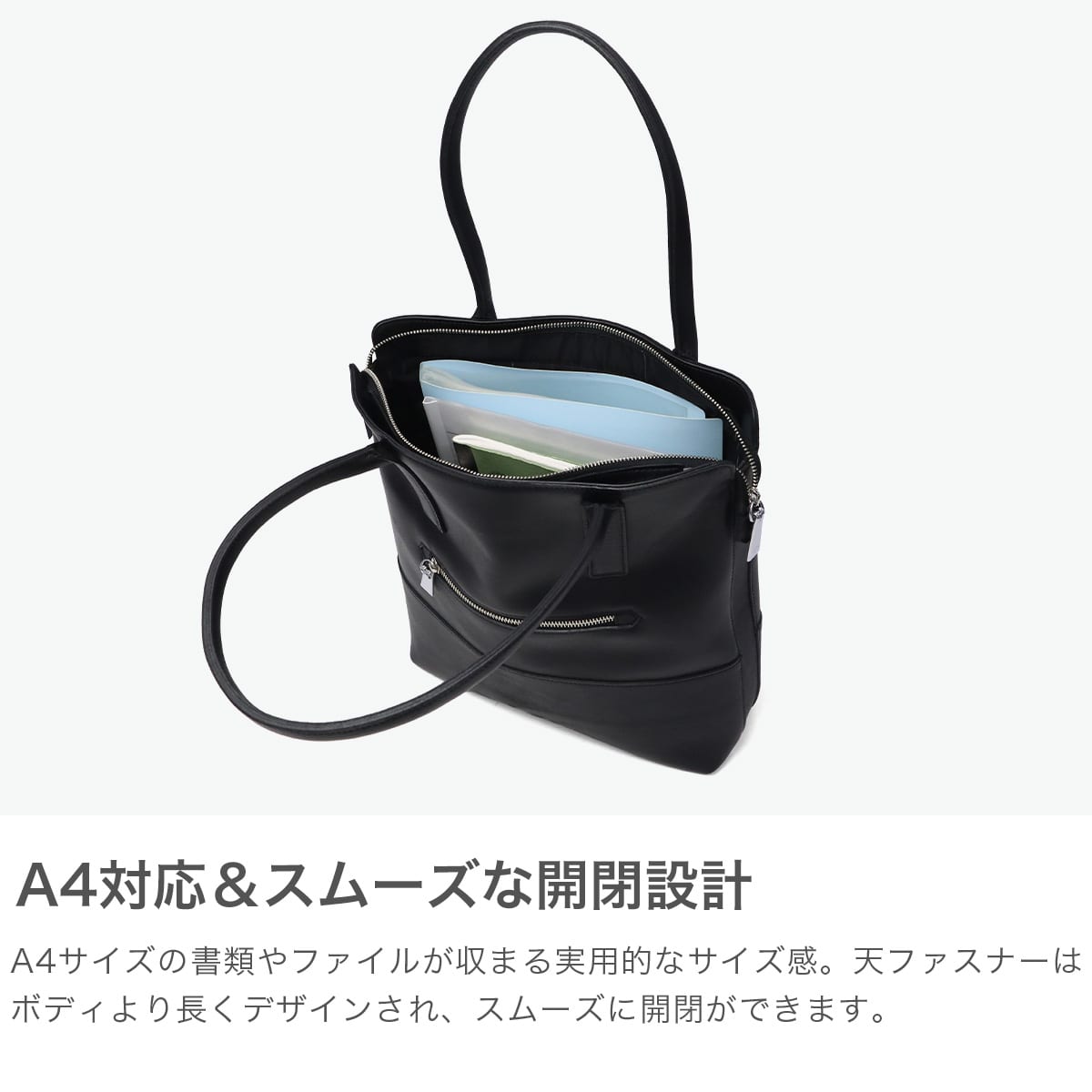 見た目はシンプルに仕上げていますが、使い勝手をとことん考えアイデアを細部に入れることで、使用感もデザイン性も極めたトートバッグ。上部はしなやかで下部はどっしりとしている構造を作り上げることで、自立できるよう仕上げました。落ち着いた品のある雰囲気で、普段使いからビジネスまで、幅広いシーンで活躍するアイテムです。