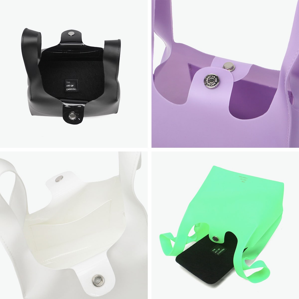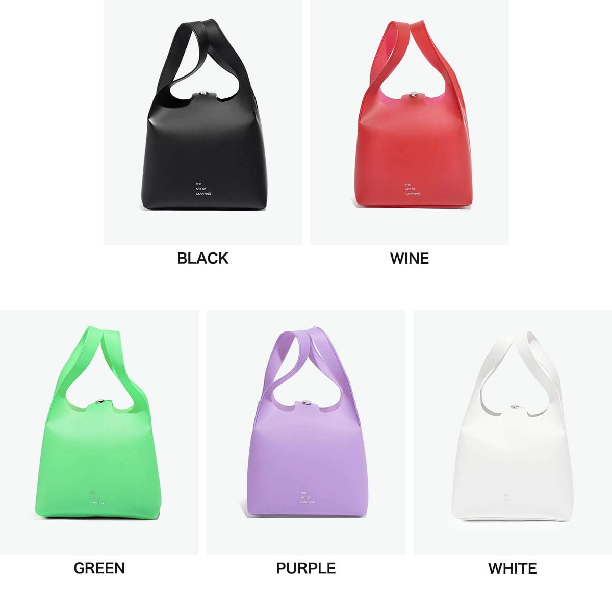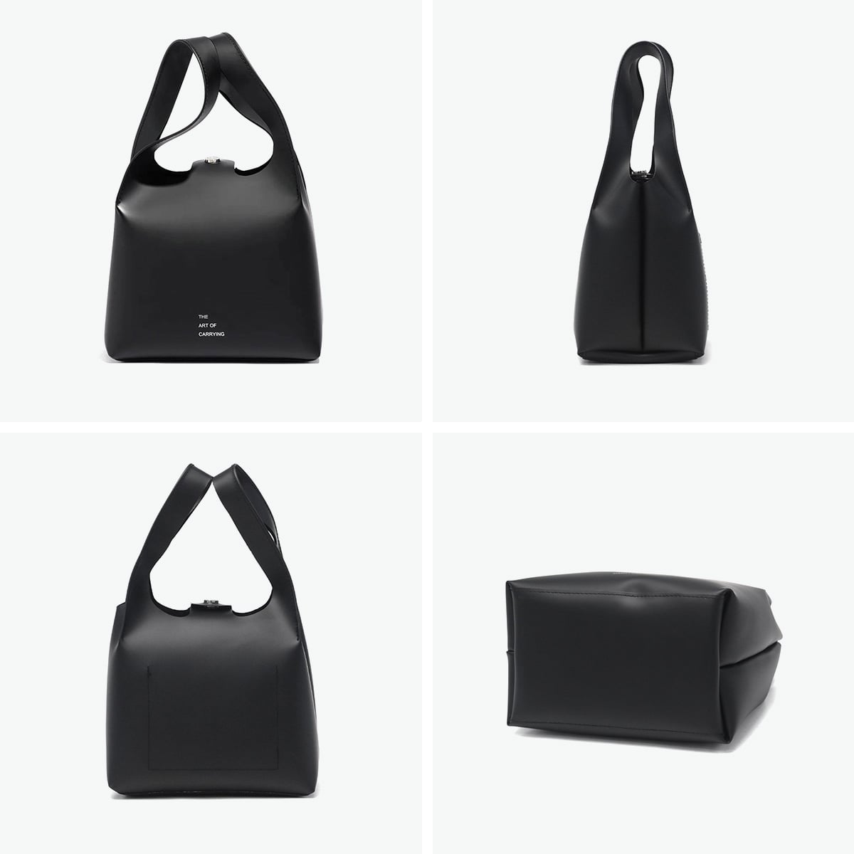マーケットの袋のようなデザインと、コロンとしたフォルムが特徴のミニトートバッグ。カーフレザーのような上質でなめらかな表情が特徴で、軽量性や防水性、耐摩耗性も兼ね備えています。雨の日や長時間の外出、旅先でも頼れる相棒に。小さめのバッグをアクセントにコーディネートの幅も広がりそうな、デザイン性の高いアイテムです。