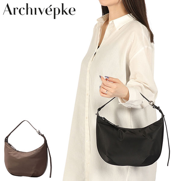 - > アーカイブエプク トートバッグ レディース ファスナー付き 布 Archivepke 軽量 小さめ ホーボーバッグ ナイロン ハーフムーン ハンドバッグ 肩掛け 大人 かわいい おしゃれ 軽い A5 黒 Luv moon bag (Nylon) OVBAX25102