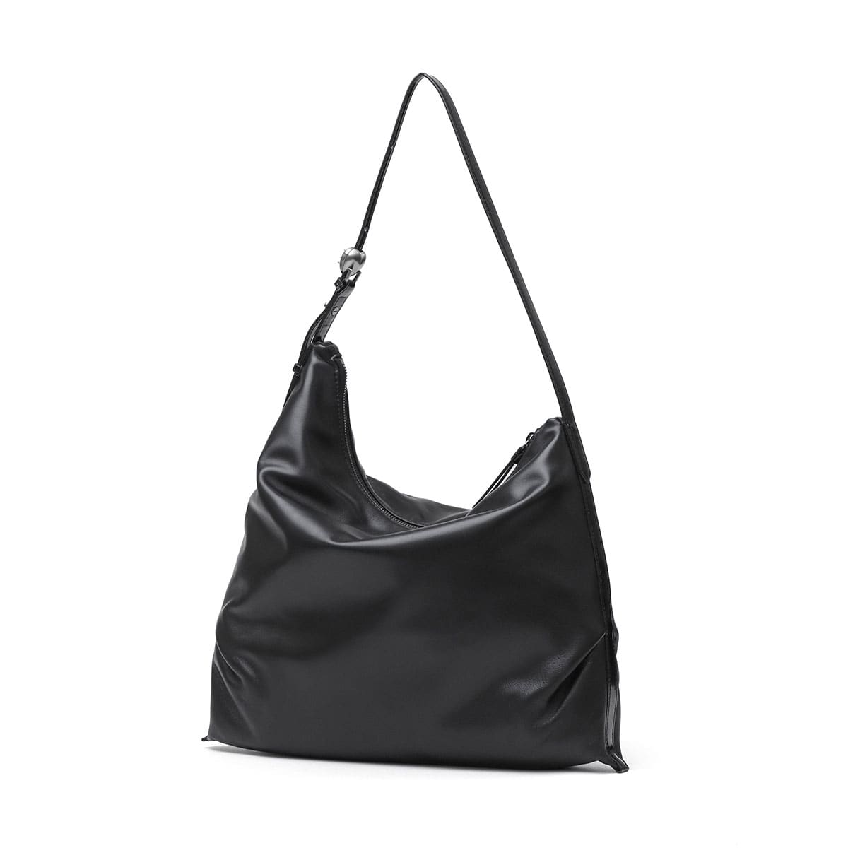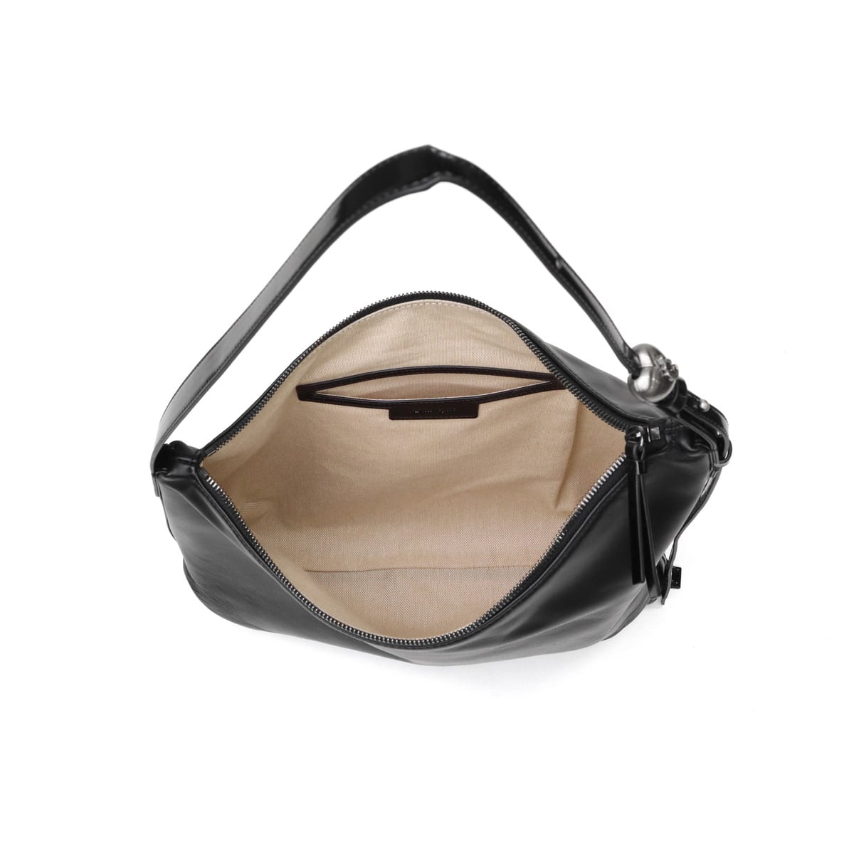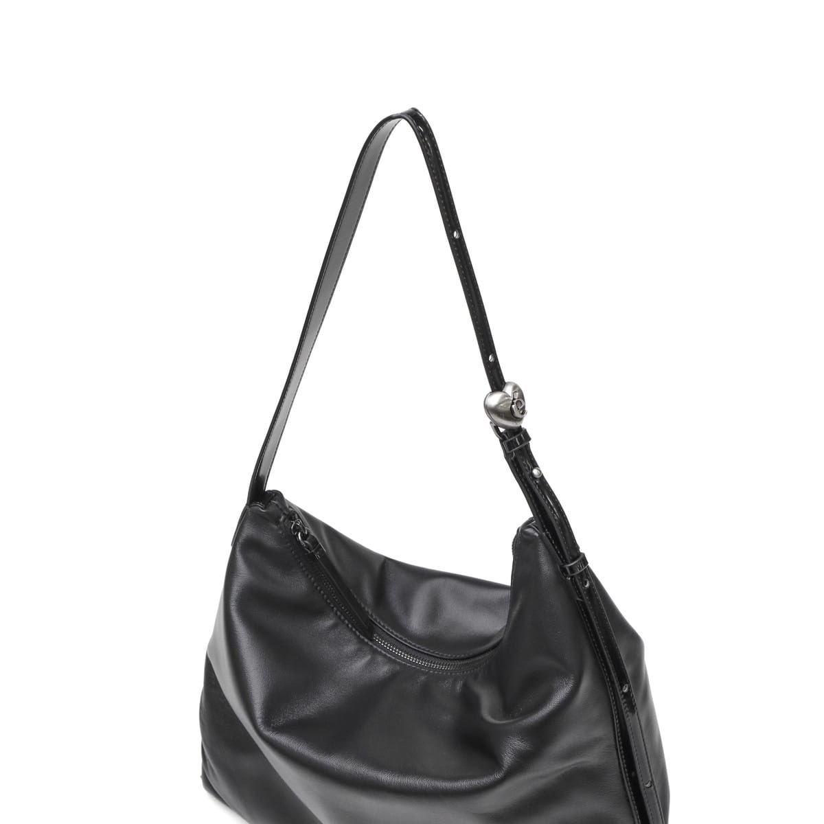 アシンメトリーな形で、持った時に自然な崩れを生み出すワンハンドル仕様。柔らかいラムレザーをたっぷりと使用した、なめらかな触り心地が特徴です。すっきりとしたデザインにハート形のストッパーがアクセント。上品さの中に、さりげなく可愛らしさをあしらった人気アイテムです。