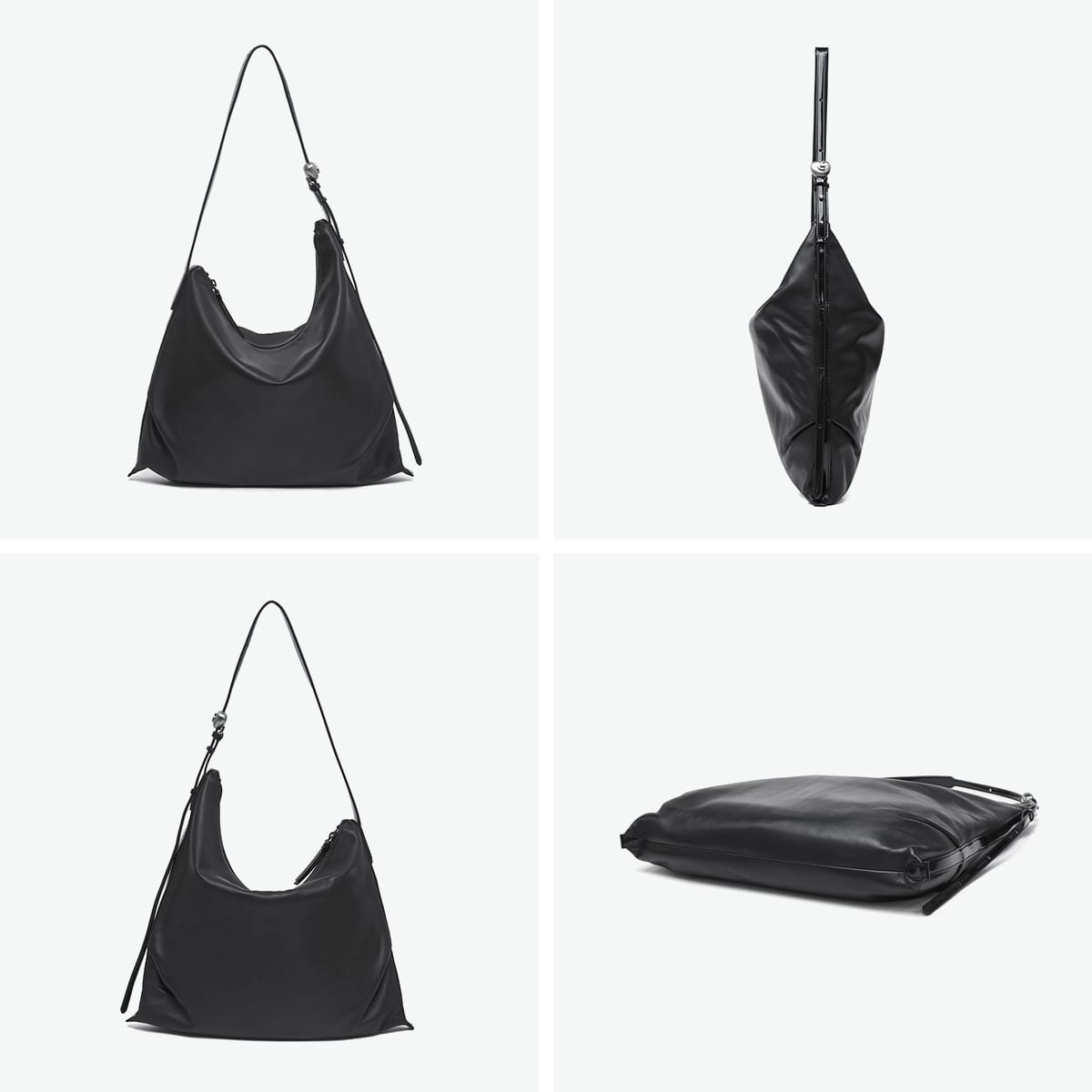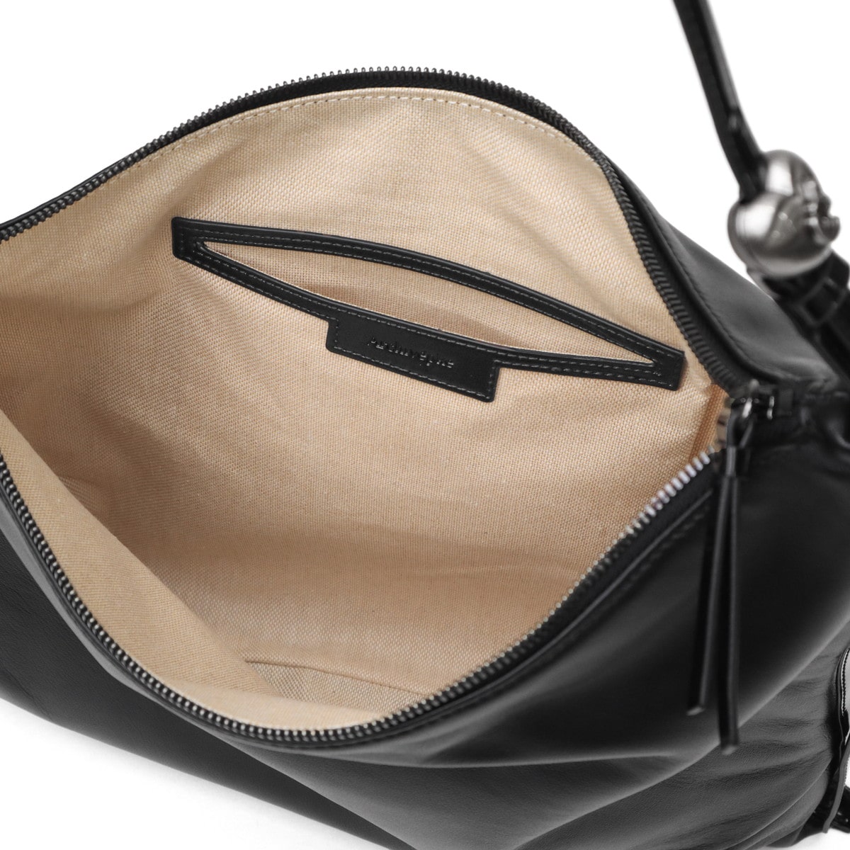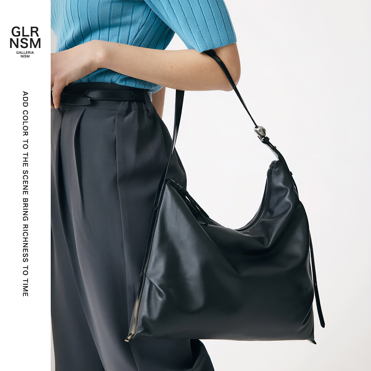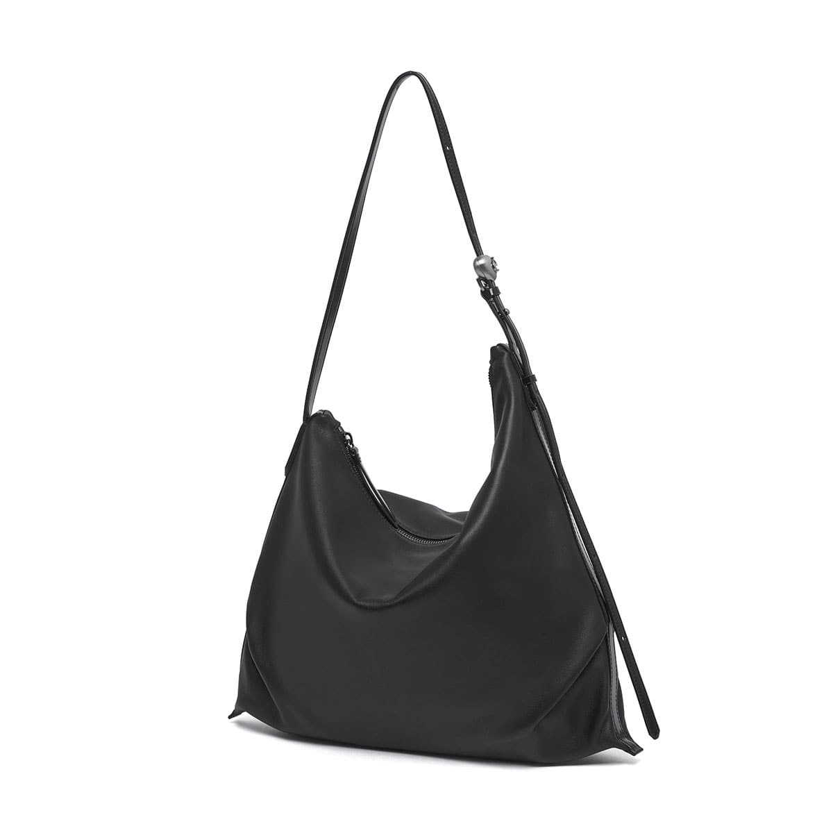 アシンメトリーな形で、持った時に自然な崩れを生み出すワンハンドル仕様。柔らかいラムレザーをたっぷりと使用した、なめらかな触り心地が特徴です。すっきりとしたデザインにハート形のストッパーがアクセント。上品さの中に、さりげなく可愛らしさをあしらった人気アイテムです。