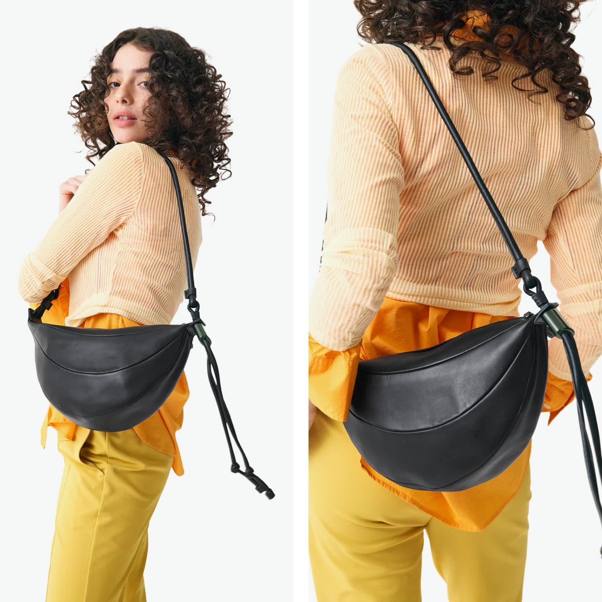 派手なディテールを排し、エレガントで洗練されたムードを醸し出すショルダーバッグ。柔らかな手触りの生地感が、ふんわりとした優しい雰囲気。シームラインが全体のフォルムに安定感を与え、同時に個性的なシルエットを作り出しています。ストラップの調節でトートバッグとしても使用できる、ユニークなアイテムです。