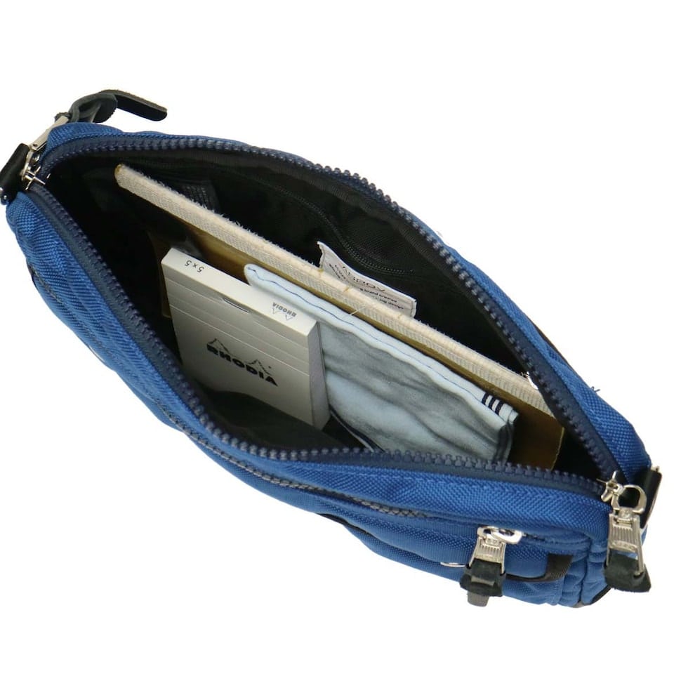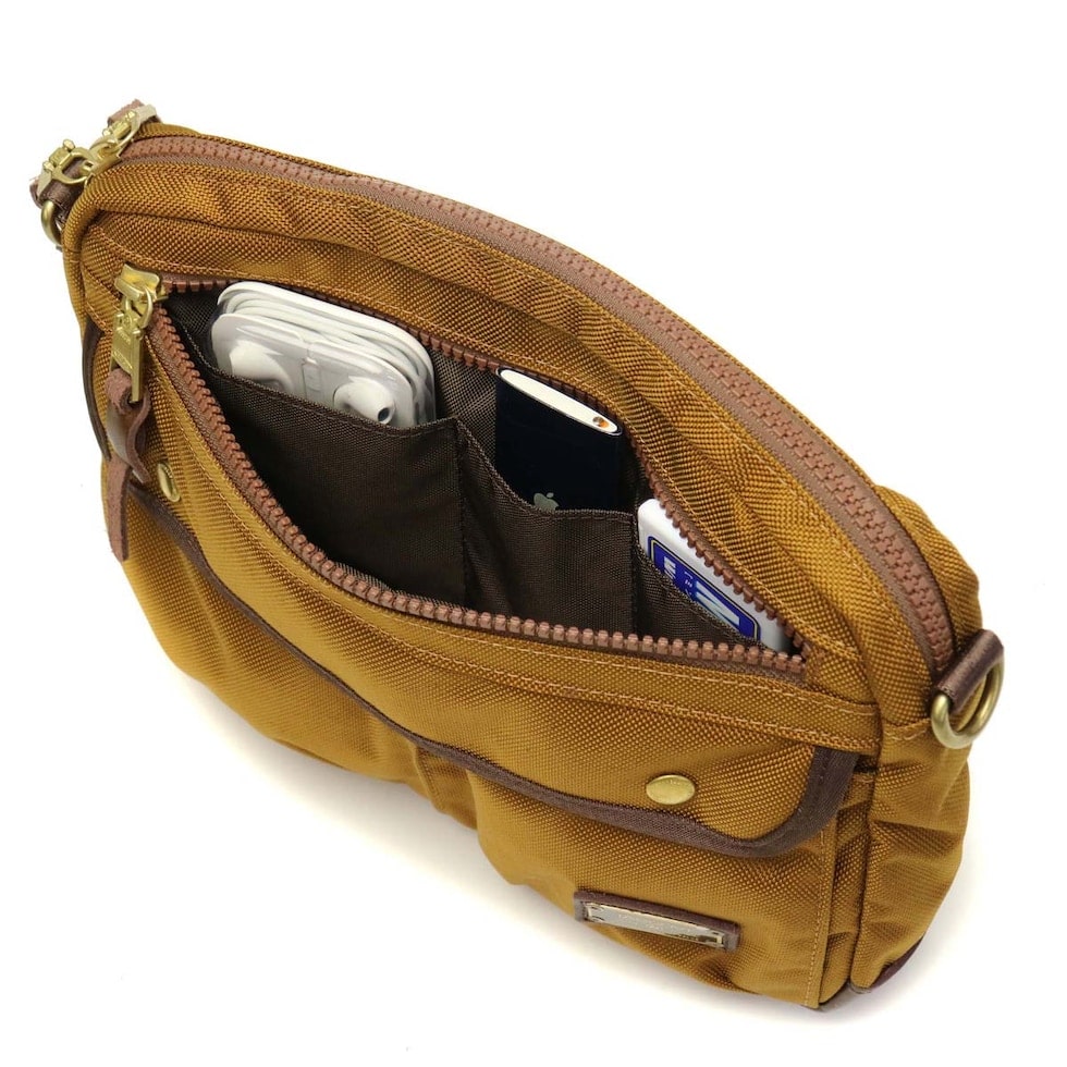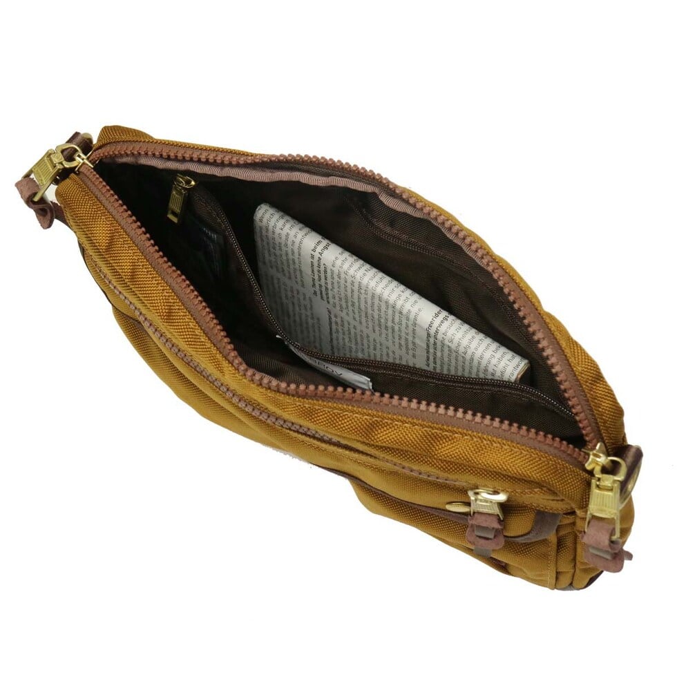 オリジナルのコーデュラバリスティックナイロンを使用し、摩擦・引き裂き・すり切れ等に対する強度を備えた薄マチのショルダーバッグです。個別収納に便利なポケットが多数備わっており、コンパクトながら使い勝手の良いつくりとなっています。ちょっとしたお出かけや、野外イベントにもおすすめです。