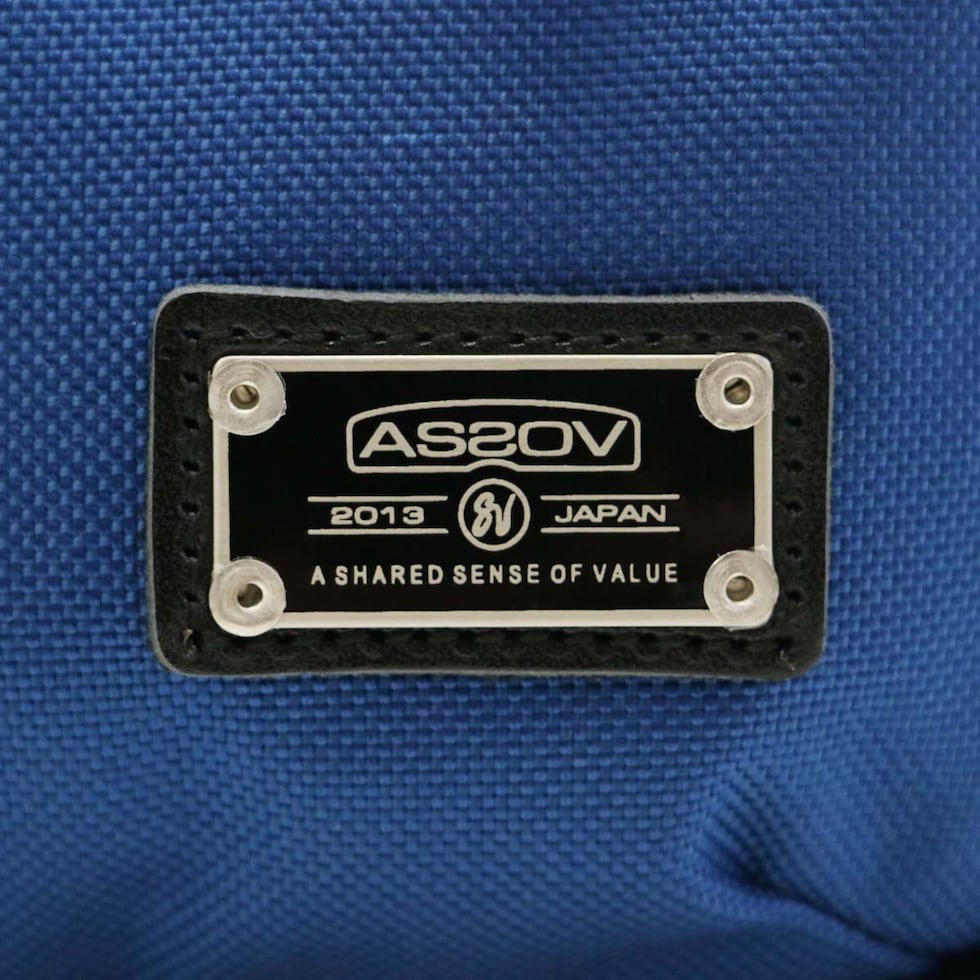 本体素材にはタテ糸に1000d、ヨコ糸に840dの66ナイロン糸を使用したオリジナルのコーデュラバリスティックナイロンを採用。また、付属レザーには環境にも人体にも優しいヌメレザーを使用。経年変化を楽しめるAS2OVオリジナルネームも魅力的です。