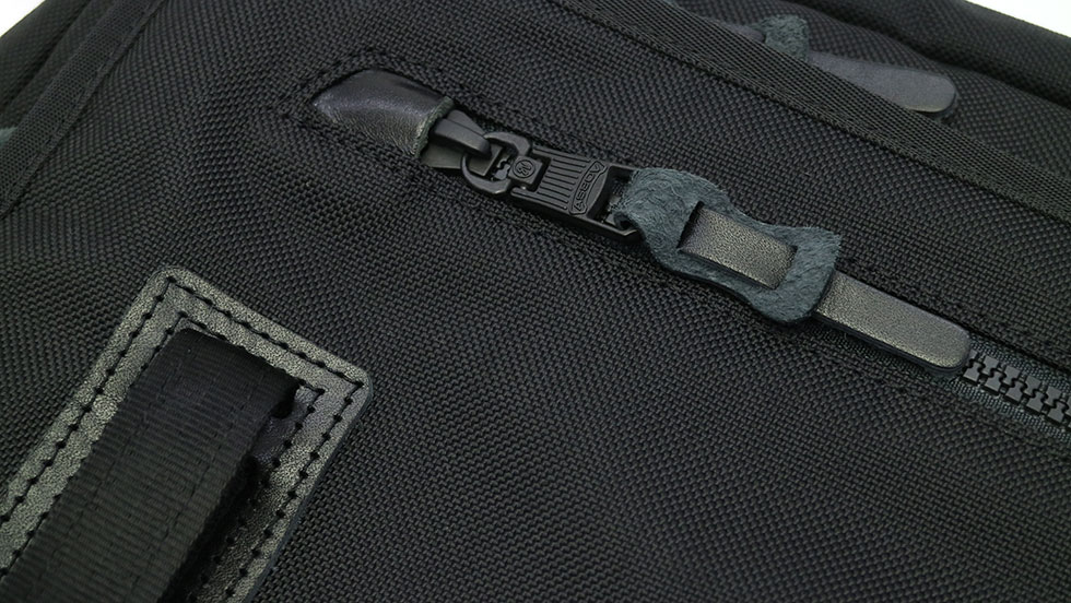 本体素材にはタテ糸に1000d、ヨコ糸に840dの66ナイロン糸を使用したオリジナルのコーデュラバリスティックナイロンを採用。また、付属レザーには環境にも人体にも優しいヌメレザーを使用。経年変化を楽しめるAS2OVオリジナルネームも魅力的です。