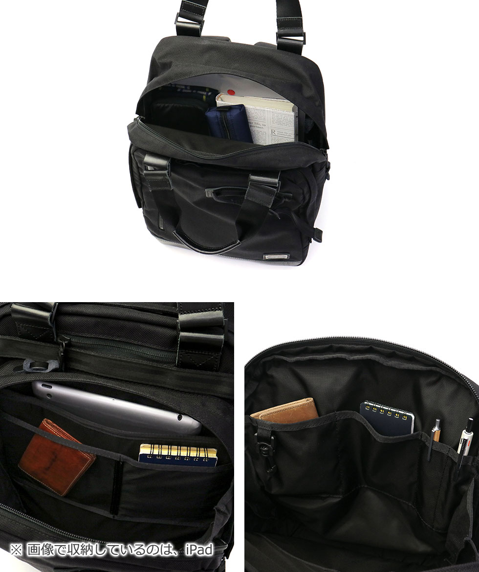 仕様 |[外側] ・ジップポケット(L)×1[PC収納×1、クリアポケット(S)×1、ポケット(S)×3、ペンホルダー×2、フック×1 内蔵] ・ジップポケット(M)×2 ・ジップポケット(S)×3 [内側] ・ジップポケット(M)×1