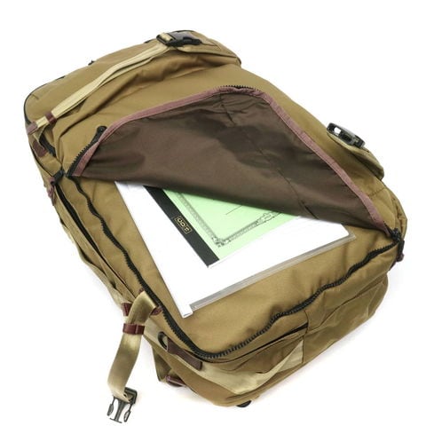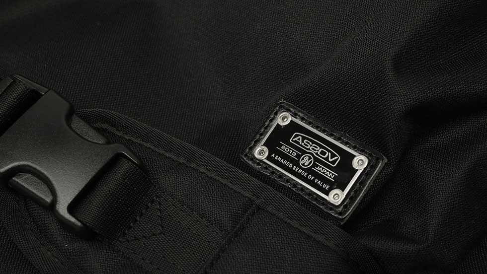 素材には、タテ・ヨコに305dの特殊ポリエステル糸を使用した『CORDURA 305d fabric』を採用し、摩擦・引き裂き・すり切れ等に対する強度を装備。ドビー織機で織り上げているため、オックス、ツイル織りでは表現出来ない特徴的な生地目に仕上がっています。フロントのオリジナル真鍮プレートもさりげないポイントのひとつです。