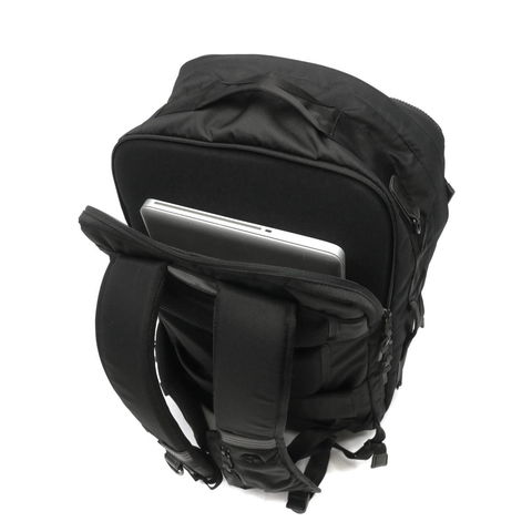 背面側には、起毛素材や厚みのあるクッション材を使用したPC収納部を備え、電子機器を安心して持ち運べるデザインがポイント。iPadサイズであれば両サイドに設けられたアクセスファスナーからも取り出しが可能です。