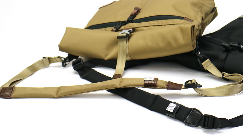 ショルダーストラップはクッション性に優れたパッドを装備しているので、身体に負担を掛けにくい構造になっています。また、ショルダーパッドには体になじみやすくする為ステッチを入れています。