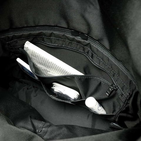 本体背面に設けられたジップからメインルームの荷物を取り出すことができます。わざわざメイン開閉部を開けなくても素早くアイテムを取り出せるので便利です。