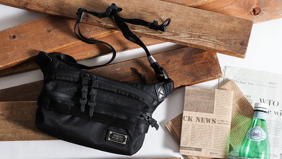 本体素材にはタテ・ヨコに305d の特殊ポリエステル糸を使用したCORDURA 305d fabricを使用し、摩擦・引き裂き・すり切れ等に対する強度を備えたウエストバッグ。充実した収納機能を備えていながらもスタイリッシュな仕上がりとなっています。