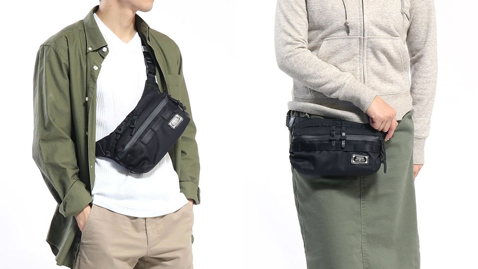 可動式のバックルを採用することで、テープの可動範囲が広がり、ウエストバッグとしてもボディバッグとしても機能を果たし、好きなスタイルに持ち方を変えられます。