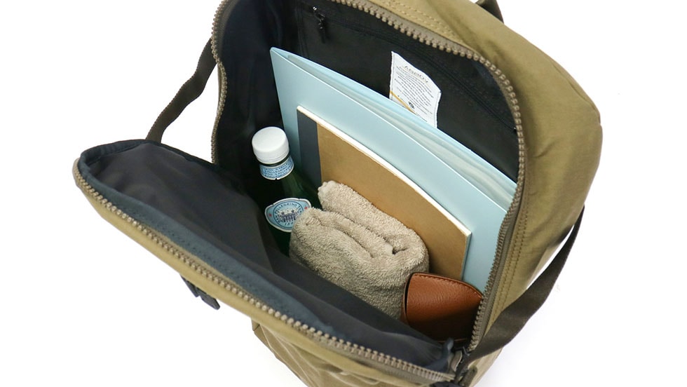 メインルームはA4サイズが収納可能の、デイリーにも休日にも使いやすいサイズ感。スリムなフォルムながらマチを備えた、充実の収納力を持ち合わせています。
