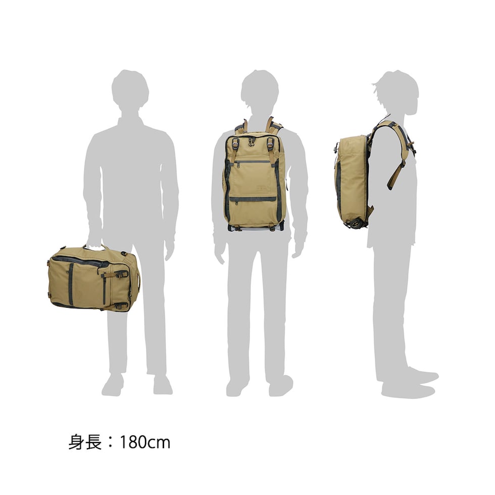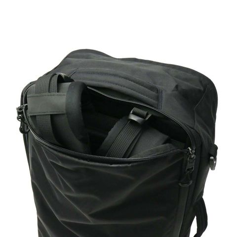 本体はバックパックとしてはもちろん、手持ちバッグとしても使用できます。バッグパックとして使用する際は、背面のジップを開いて下部のバックルに固定します。シーンごとに使い分けられる優秀なバックパックです。