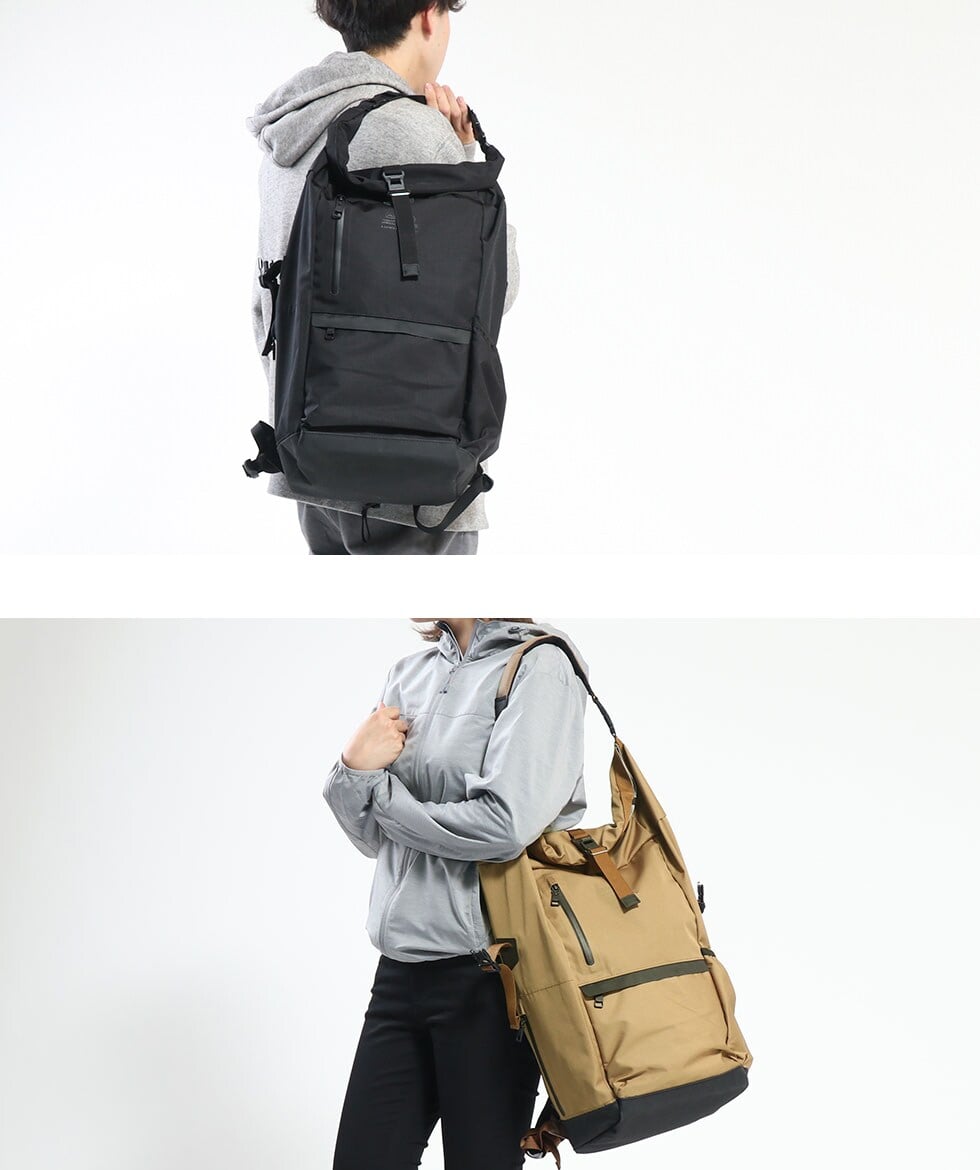 防水性の高いつくりが魅力的なロールトップタイプのバックパック。付属している2本のショルダーストラップで、肩掛け、手持ちもできる便利なアイテムです。シンプルかつスタイリッシュなルックスで、どんなスタイルにもマッチします。