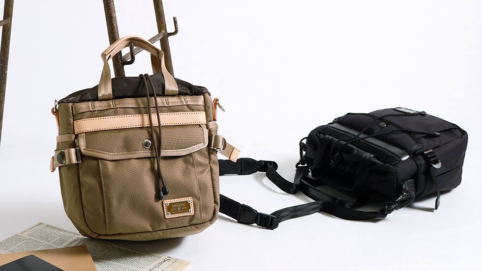 オリジナルのコーデュラバリスティックナイロンを使用し、摩擦・引き裂き・すり切れ等に対する強度を備えた2WAY巾着ショルダーバッグ。スクエア型のコンパクトなシルエットで普段使いに最適です。随所にレザーを取り入れ、堅牢でありながらスタイリッシュな仕上がりとなっています。