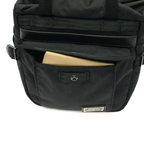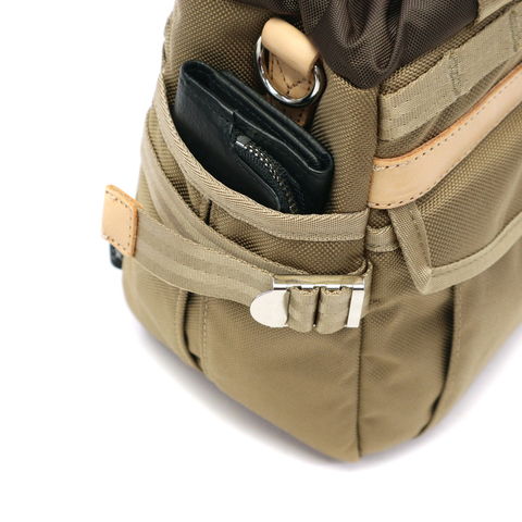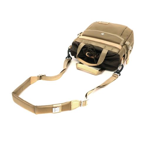 本体素材にはタテ糸に1000d、ヨコ糸に840dの66ナイロン糸を使用したオリジナルのコーデュラバリスティックナイロンを採用。また、付属レザーには環境にも人体にも優しいヌメレザーを使用し、経年変化を楽しめるAS2OVオリジナルネームも魅力的です。