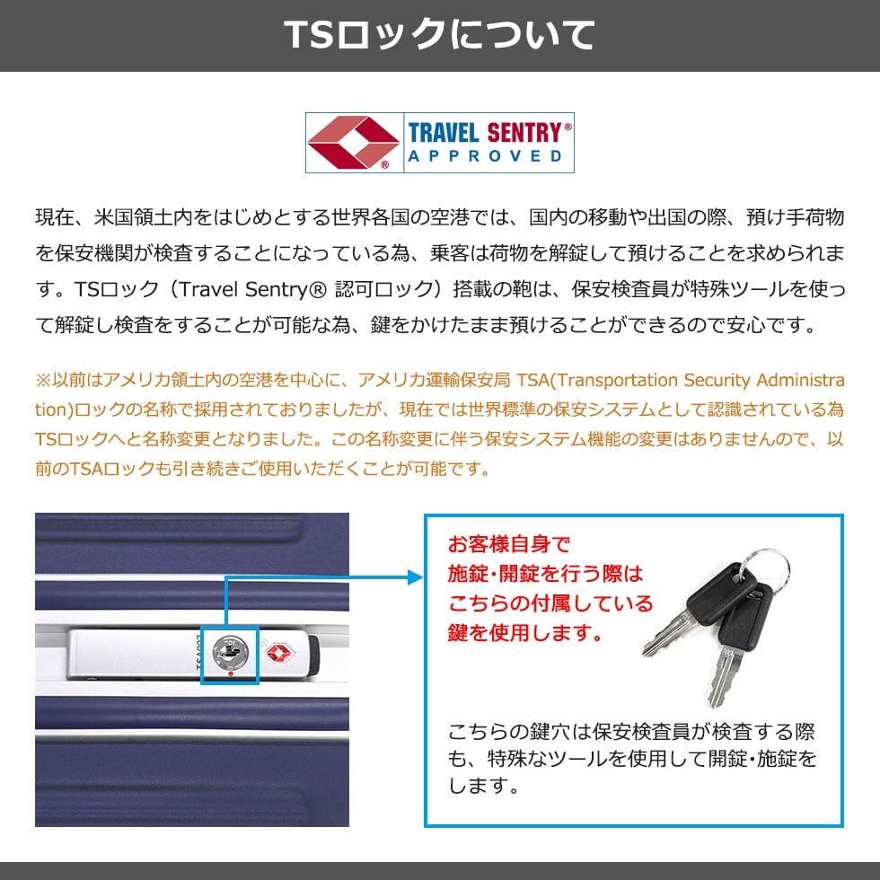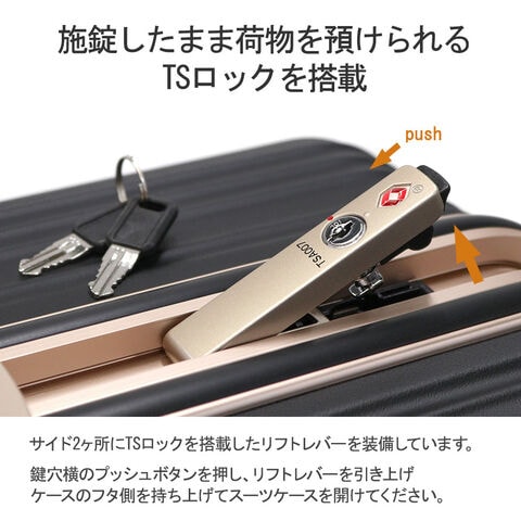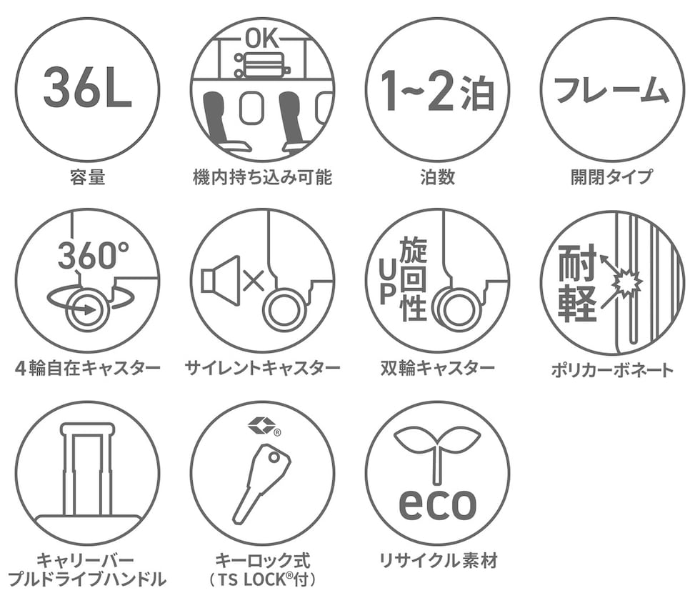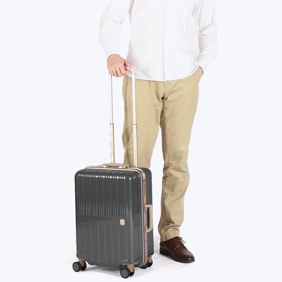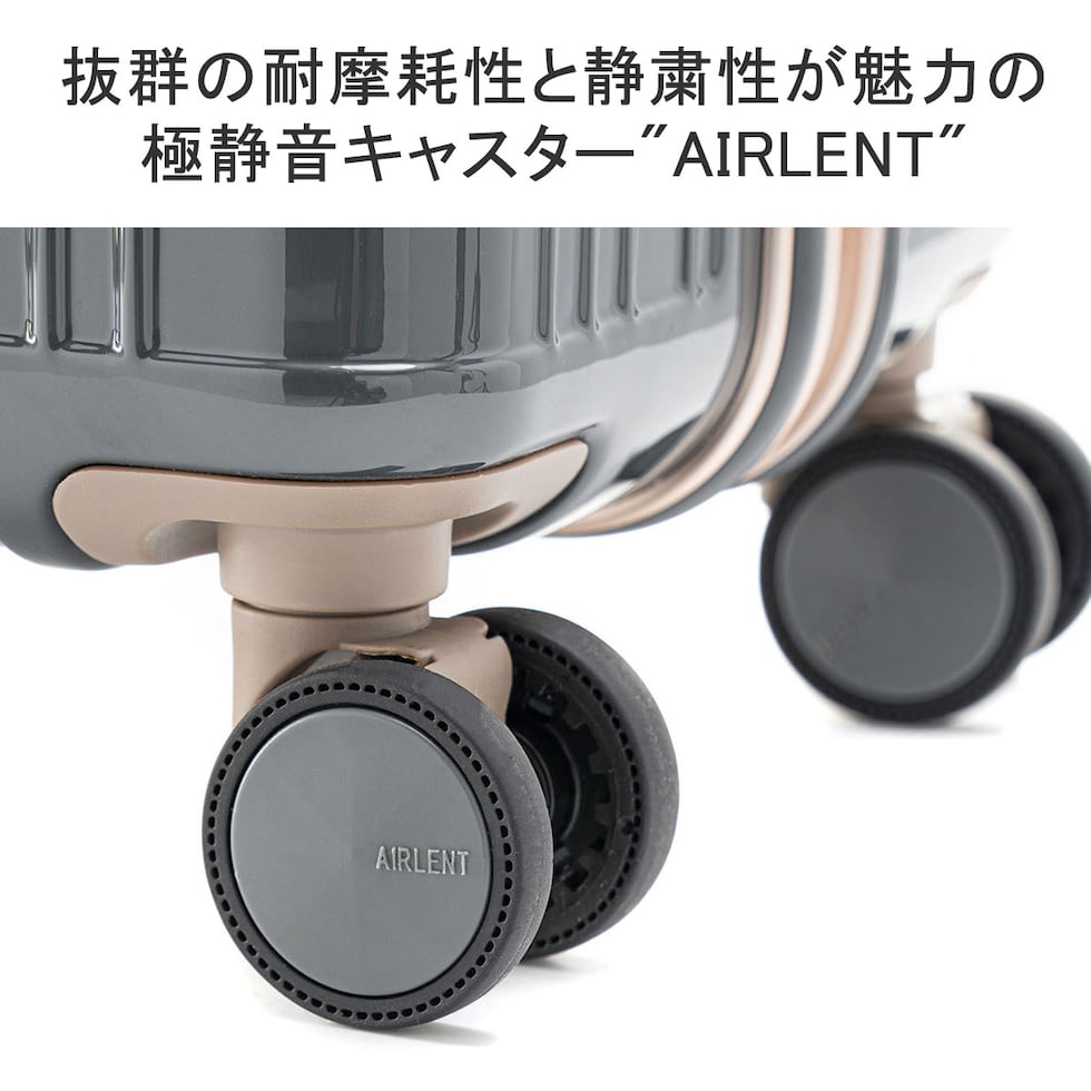 積み重ねた知識とノウハウを結集して作り上げた最上級超軽量キャリーケース『Dream Light』シリーズの36Lモデル。ボディはピュアリティの高いバージン材料を採用し、トップクラスの軽量化・耐衝撃性を備えています。さらに、日乃本錠前との共同開発による極静音キャスターで、静かな走行を可能に。内装生地には再生PET生地が使用され、環境にも配慮しているのもポイント。