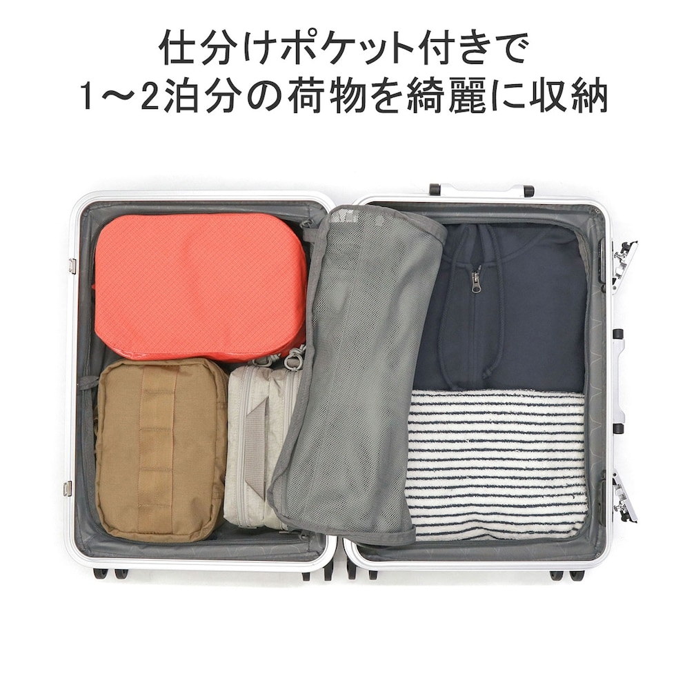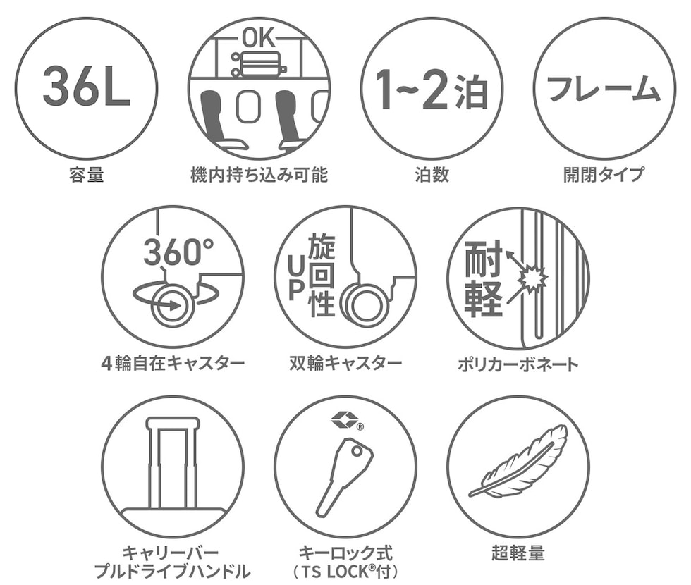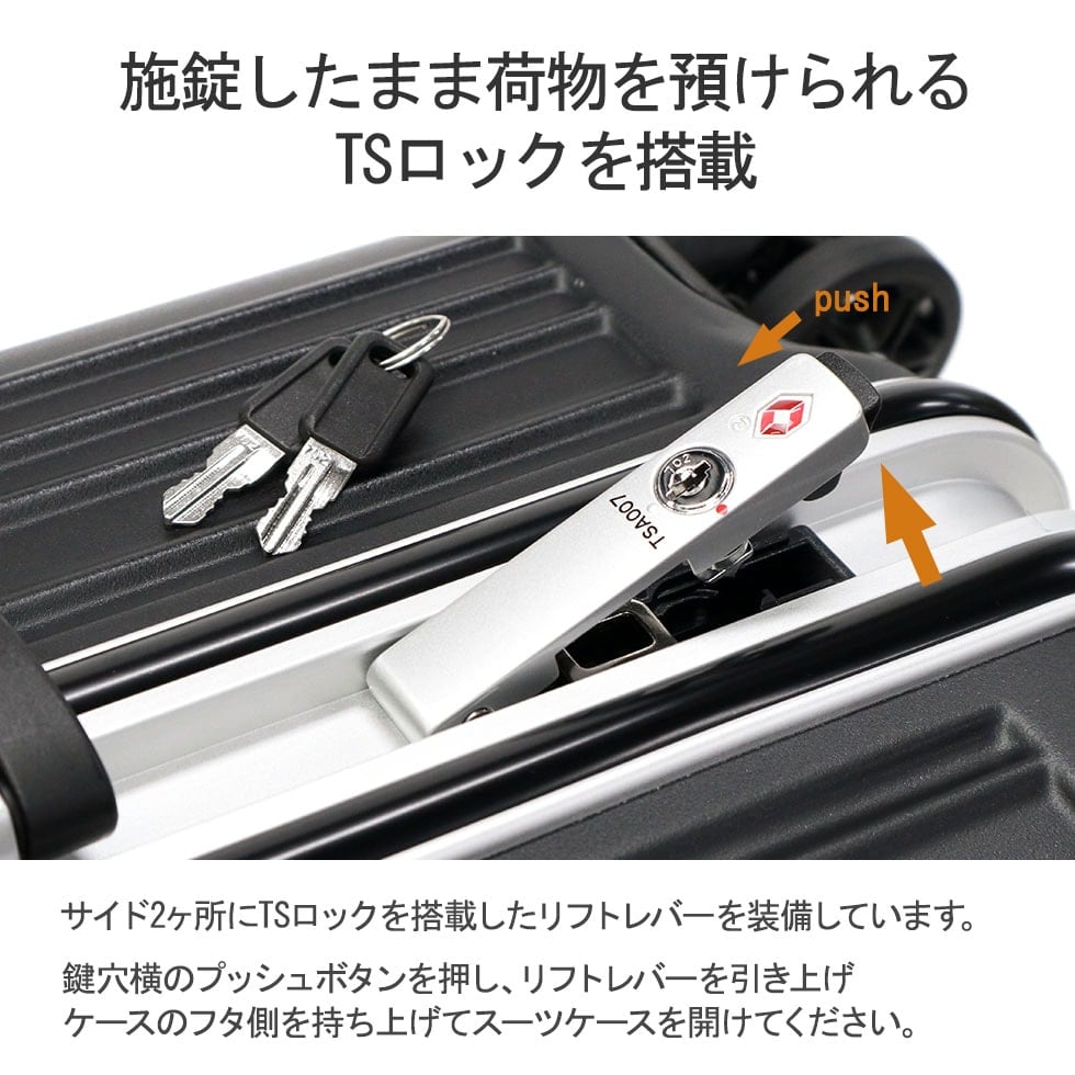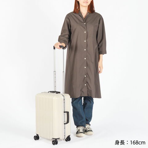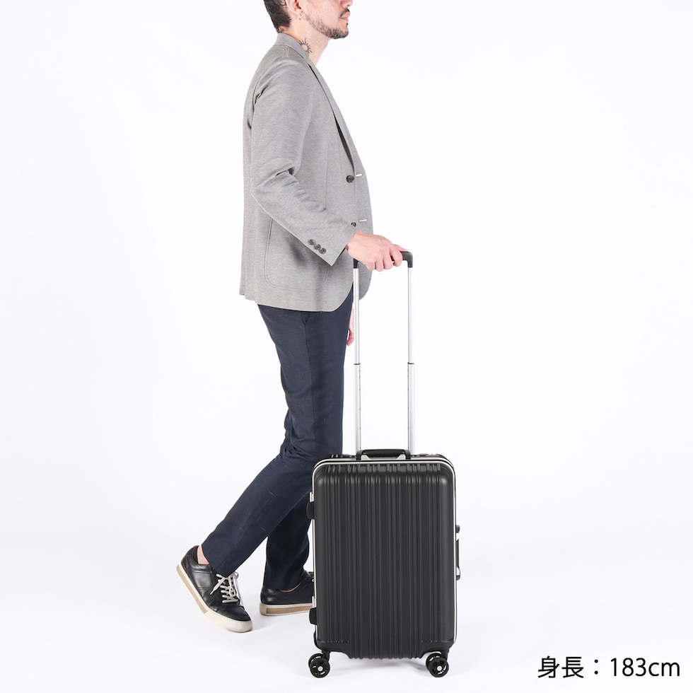 一般的に重量が重くなりがちなフレームタイプにも関わらず規格外の軽さを実現したシリーズ、その名も『Magicalouis/マジカルイス』。構造から素材、各種部材の適正化を行い、さらに高剛性フレームを採用することで軽量性と高剛性を両立しました。こちらのスーツケースは、機内持ち込み可能で1~2泊程度の旅に最適なサイズ感。フレームタイプへの印象を変える、驚きの軽さを是非体験してください。