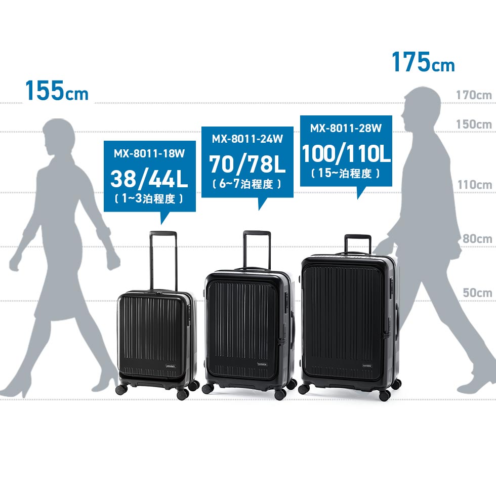 アジアラゲージ キャリーケース 機内持ち込み可能 Sサイズ Asia Luggage A.L.I スーツケース 38L 44L 1~3泊 静音 縦開き PC フロントオープン エキスパンダブル TSロック ストッパー MAXBOX MX-8011-18W