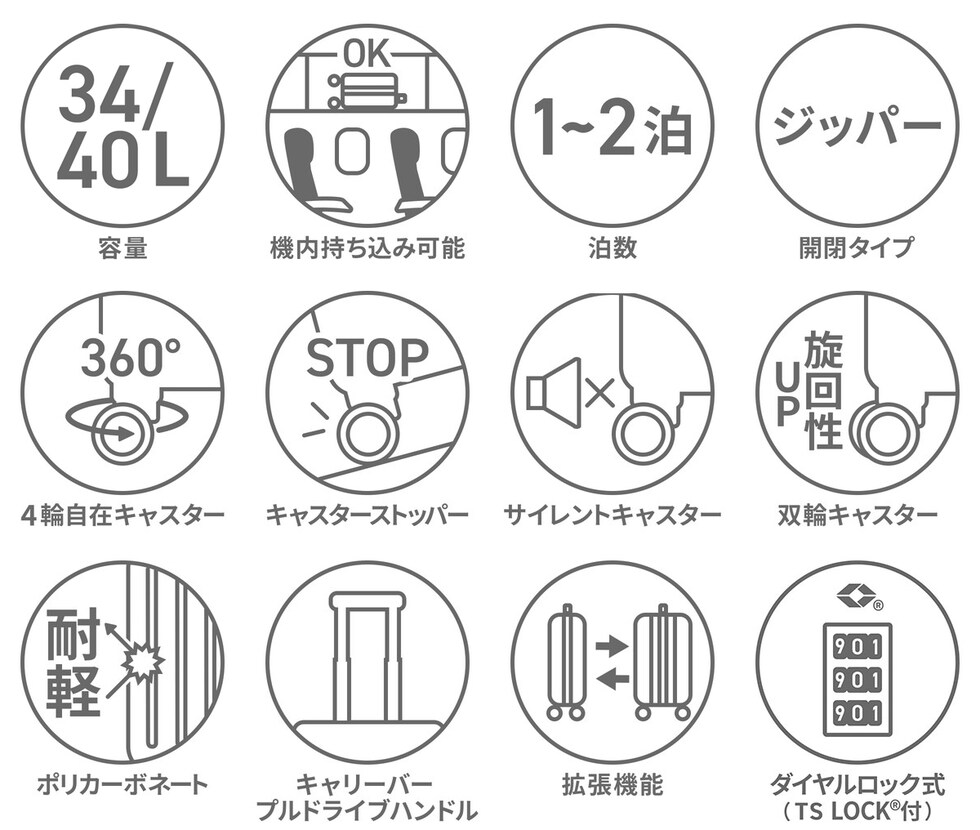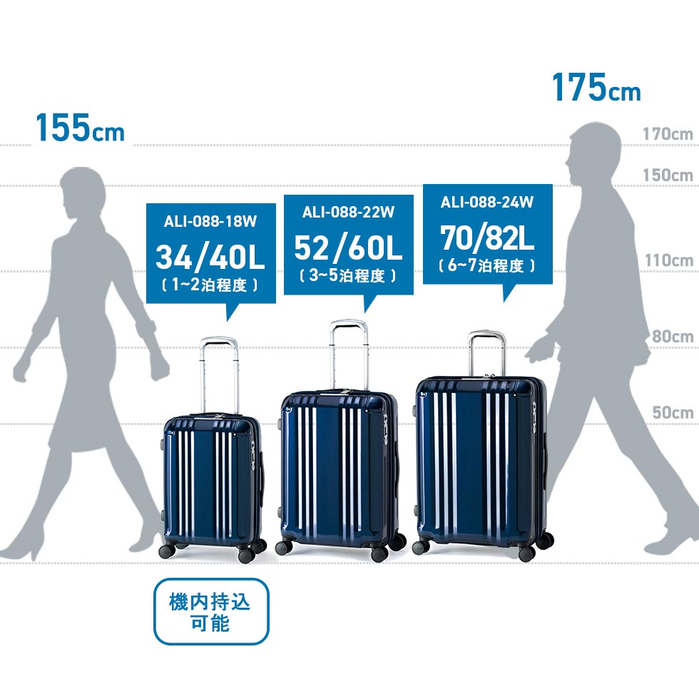 ・こちらの商品はエキスパンダブル機能の拡張時が縦+横+高さの3辺の和が115cmを超えるサイズです。機内持ち込み可能サイズは航空会社や飛行機の機種などによって異なります。詳細につきましては、各航空会社へ直接お問い合わせください。