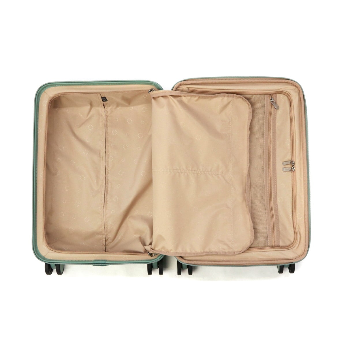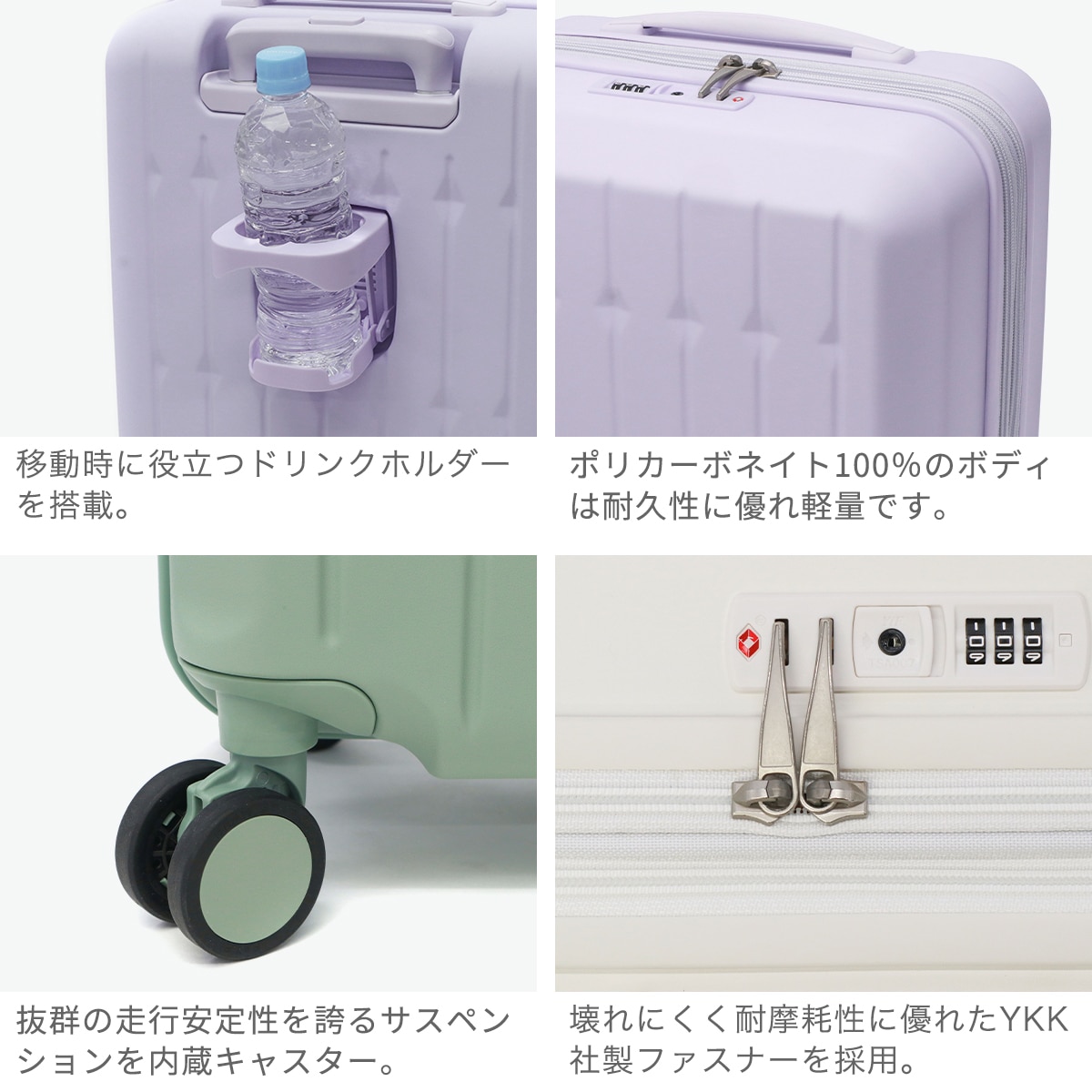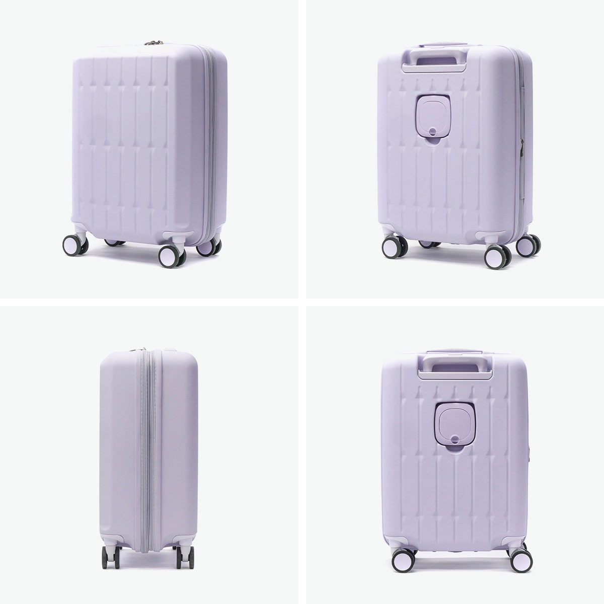 ドリンクホルダーや拡張機能のついた多機能なキャリーケース。こちらは、拡張前であれば機内持ち込み可能なサイズです。折り畳み式のドリンクホルダーは、水筒や折り畳み傘が収納可能で、移動時に両手が空いて楽々快適♪サスペンションを内蔵したキャスターは、凹凸の多い地面でも衝撃を吸収し滑らかな走行を実現。パステルカラーのかわいいデザインで、旅行や出張をおしゃれに彩ってくれます。