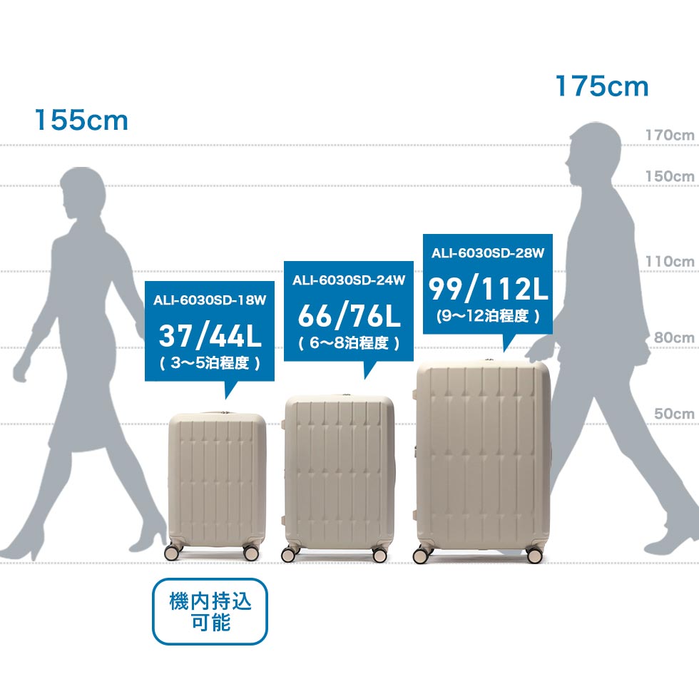 アジアラゲージ スーツケース 機内持ち込み Sサイズ Asia Luggage キャリーケース ハードキャリー 拡張 拡張機能 軽量 かわいい おしゃれ ドリンクホルダー サスペンション内蔵 37L 44L 3~5泊 ALI-6030SD-18W