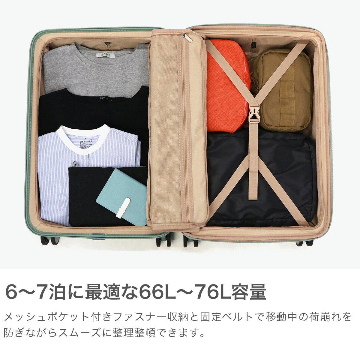 アジアラゲージ スーツケース Mサイズ Asia Luggage キャリーケース ハードキャリー 拡張 拡張機能 軽量 かわいい おしゃれ ドリンクホルダー サスペンション内蔵 静音キャスター 66L 76L 6~8泊 ALI-6030SD-24W