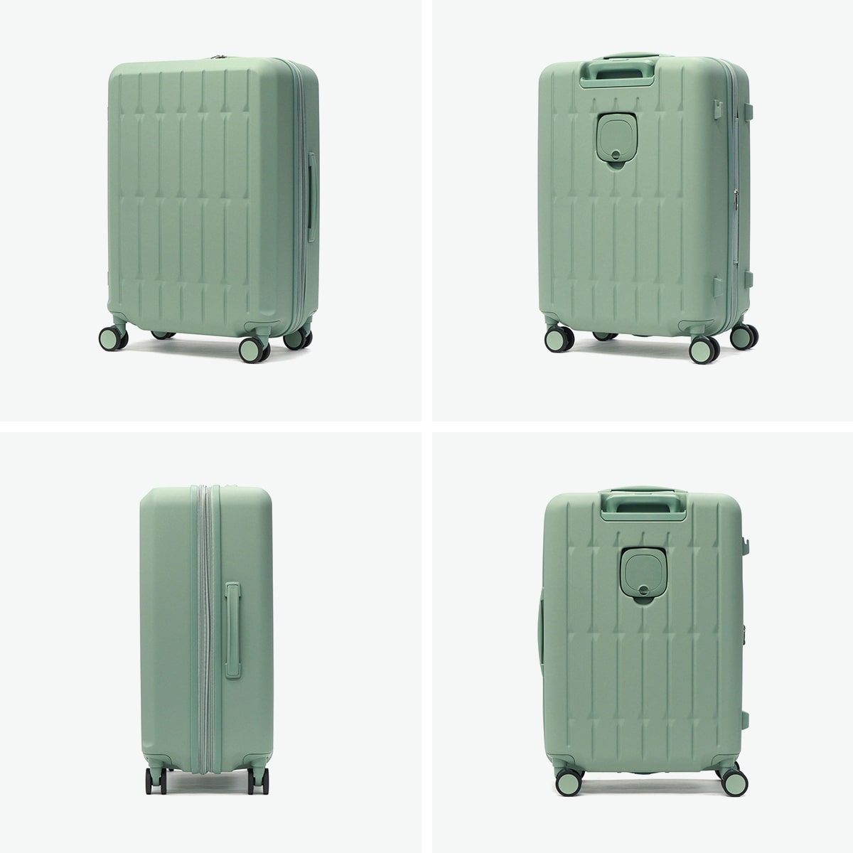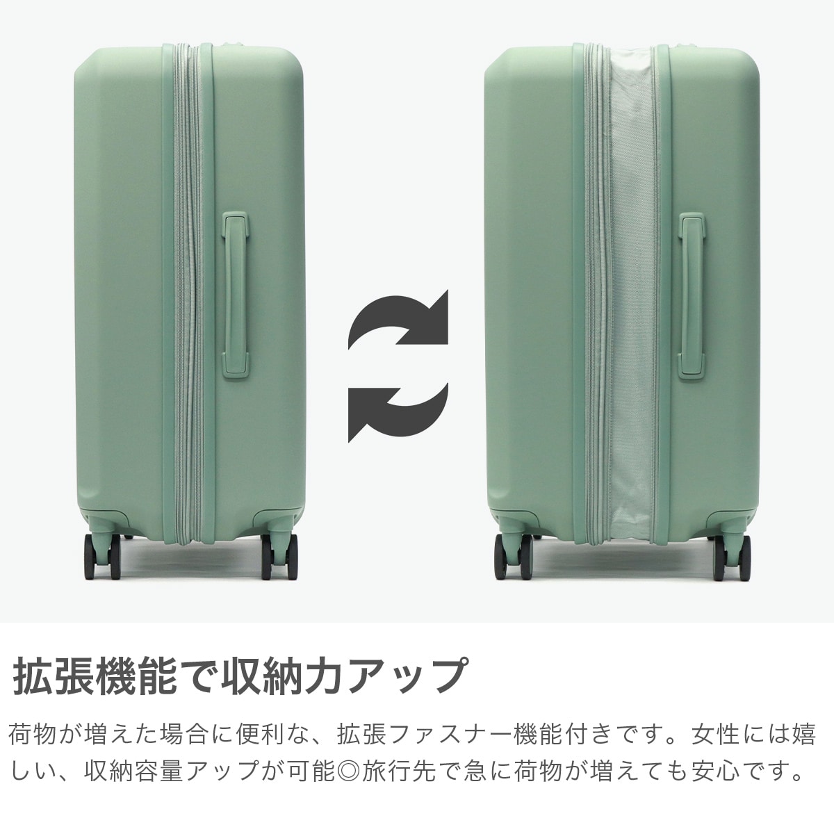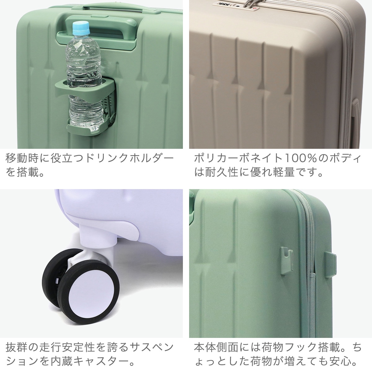 ドリンクホルダーや拡張機能のついた多機能なキャリーケース。こちらは、66~76Lへ拡張可能なサイズです。折り畳み式のドリンクホルダーは、水筒や折り畳み傘が収納可能で、移動時に両手が空いて楽々快適♪サスペンションを内蔵したキャスターは、凹凸の多い地面でも衝撃を吸収し滑らかな走行を実現。パステルカラーのかわいいデザインで、旅行や出張をおしゃれに彩ってくれます。