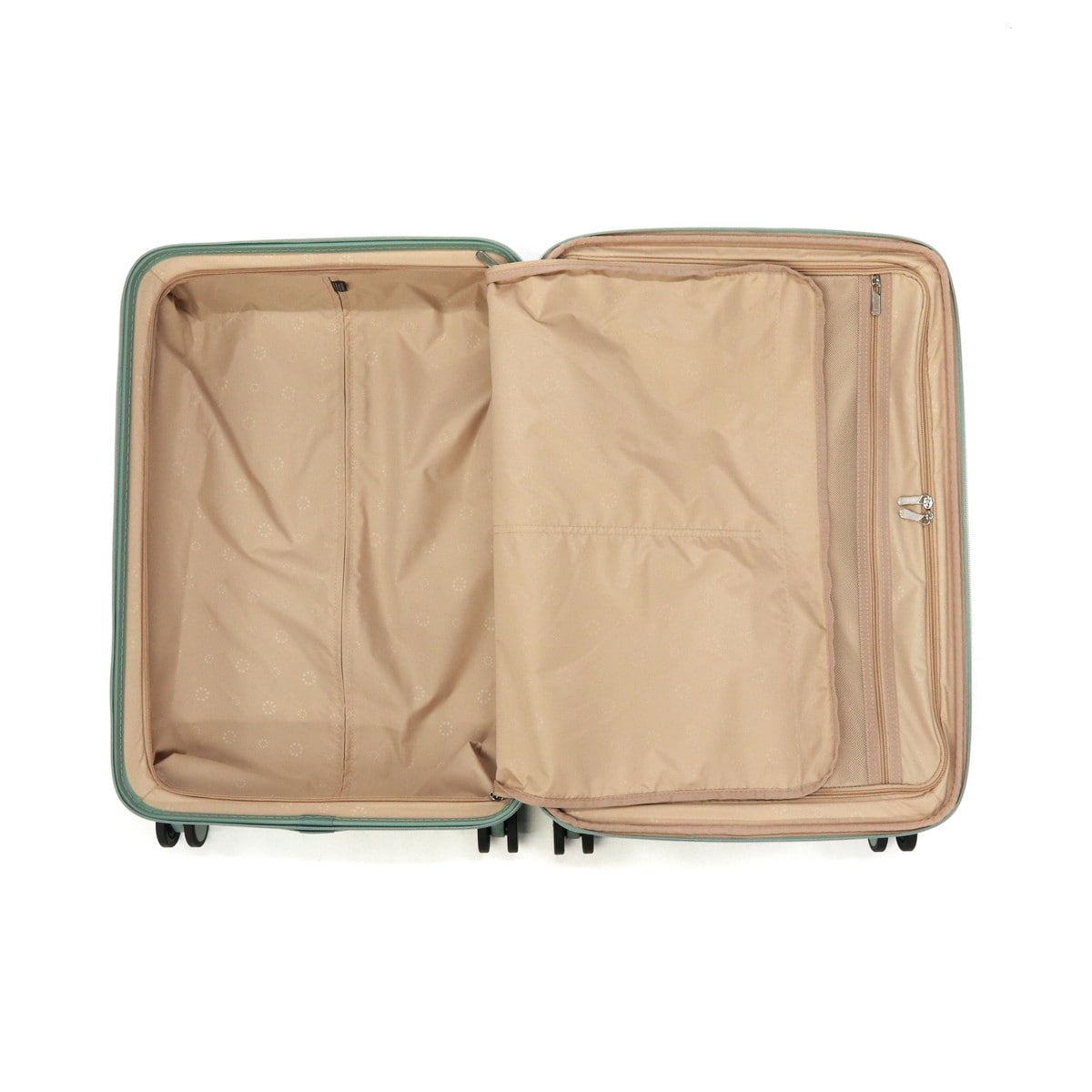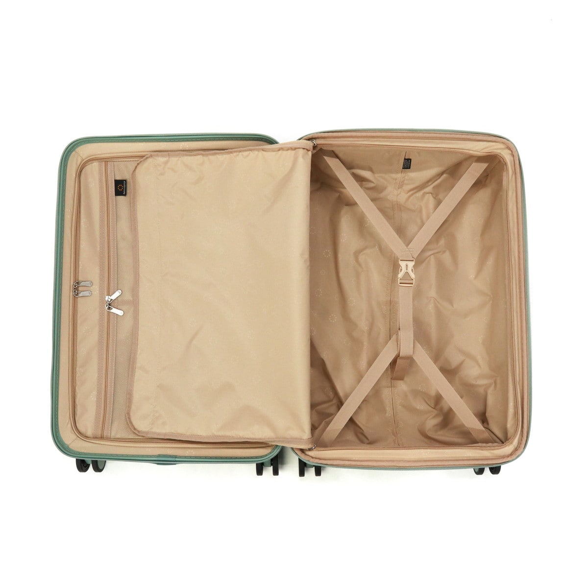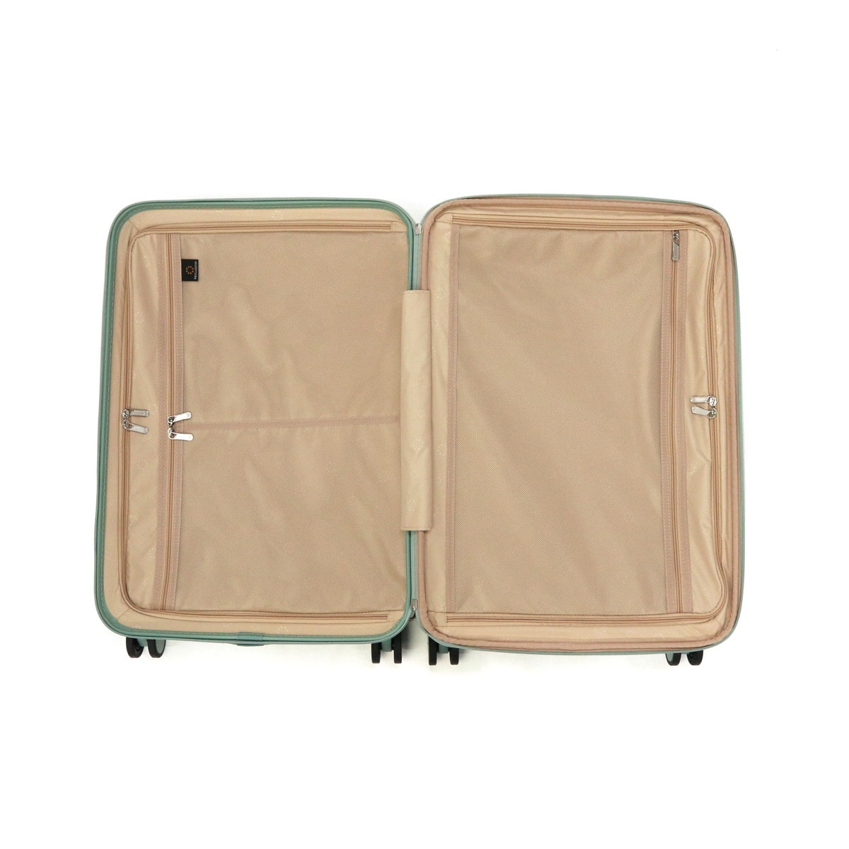 ドリンクホルダーや拡張機能のついた多機能なキャリーケース。こちらは、66~76Lへ拡張可能なサイズです。折り畳み式のドリンクホルダーは、水筒や折り畳み傘が収納可能で、移動時に両手が空いて楽々快適♪サスペンションを内蔵したキャスターは、凹凸の多い地面でも衝撃を吸収し滑らかな走行を実現。パステルカラーのかわいいデザインで、旅行や出張をおしゃれに彩ってくれます。
