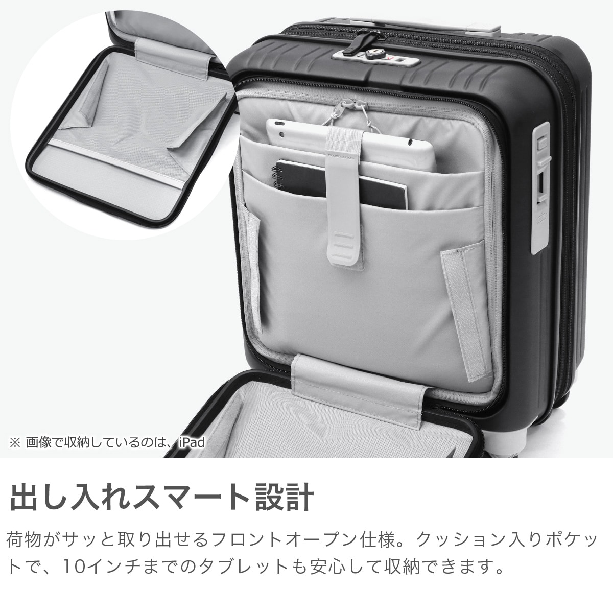 アジアラゲージ スーツケース 機内持ち込み Asia Luggage キャリーケース フロントオープン 拡張機能 軽量 おしゃれ ストッパー タブレット収納 コインロッカー 24L 29L 2~3泊 10inch MAX SMART MS-8080-14W