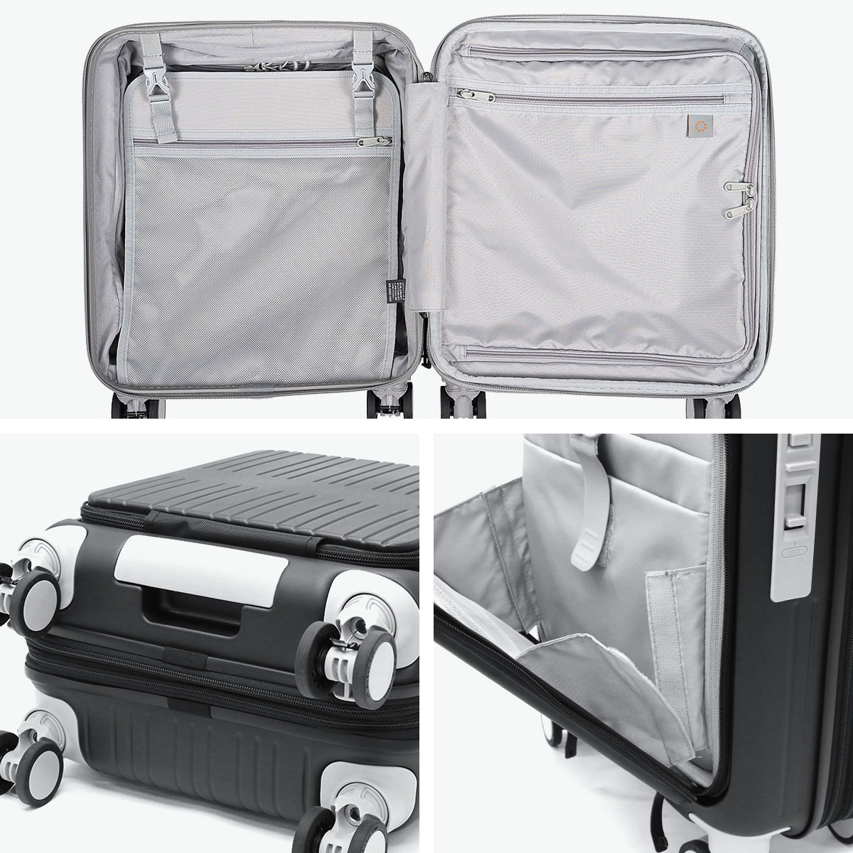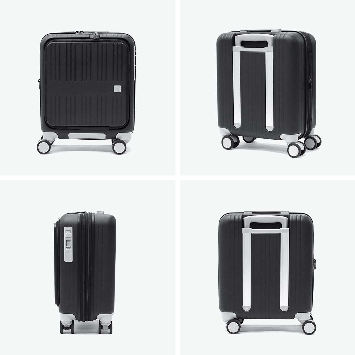 駅やターミナルのコインロッカーに収納可能なコンパクト設計が魅力の、機内持ち込みサイズのスーツケース。荷物が増えた際に便利な拡張機能や、必要なものをスムーズに取り出せるフロントオープン機能など、あると嬉しい機能を充実させました。旅行や出張はもちろん、イベント時にも気軽に使えるコンパクトなサイズ感です。