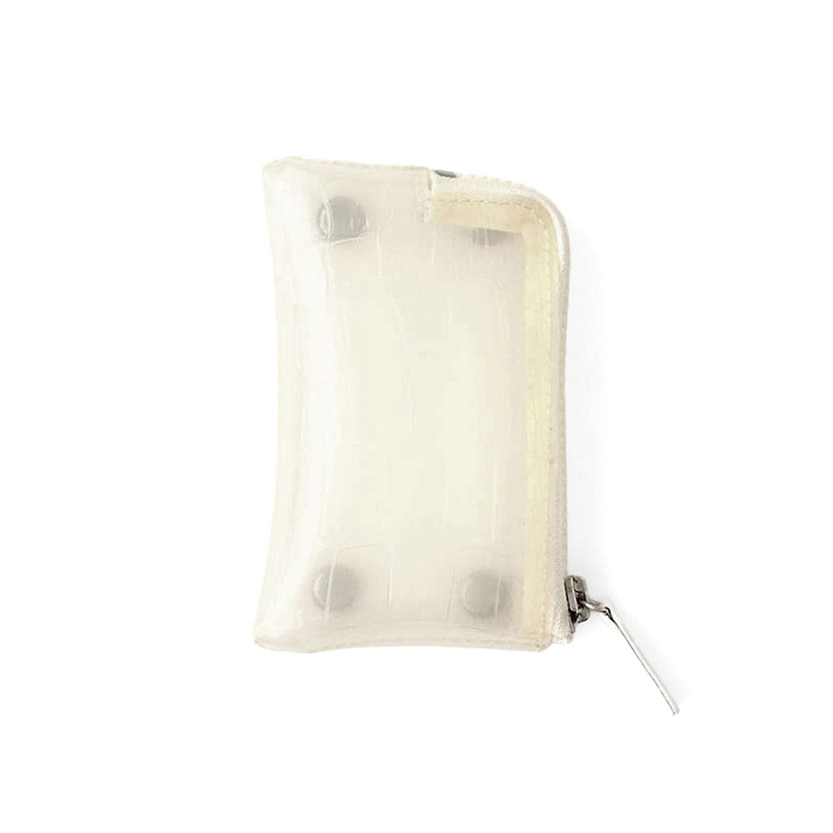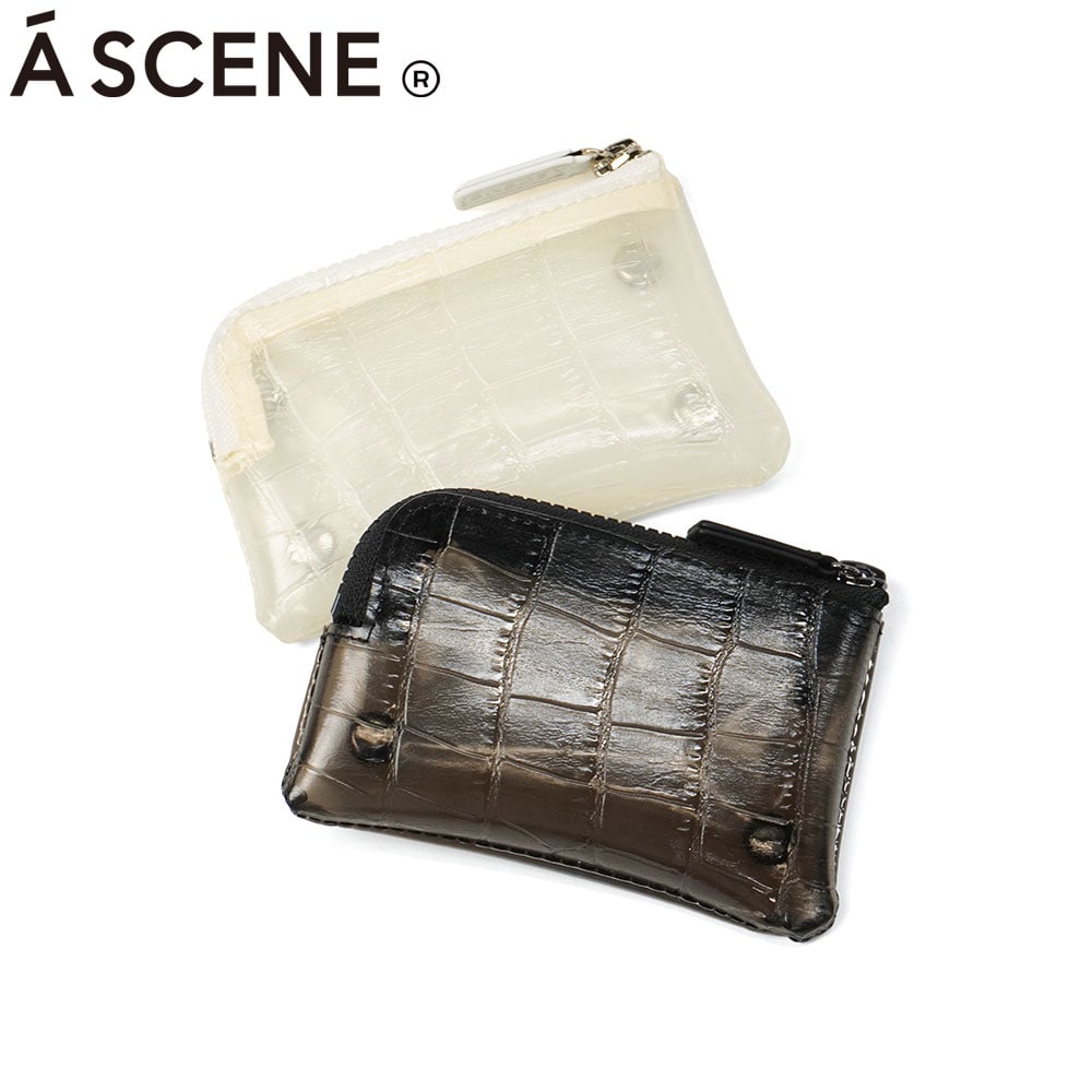 クロコ柄を型押ししたポケット。程よく透け感あるリュクスな雰囲気が魅力です。シンプルでありながら、さりげなく個性を引き出してくれます。オンオフ問わないクールなカラーもポイント。必需品のスマホと一緒に小物を持ち運べるだけでなく、ちょっとしたコーデのアクセントにもなるアイテムです。