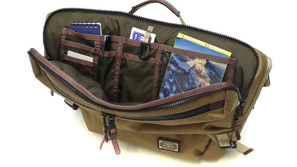 内外にポケットを豊富に備え、アイテムごとに仕分けて収納したい方にはぴったりの仕上りです。フロント上部にはオーガナイザーを装備し、細々とした物をまとめて管理できます。