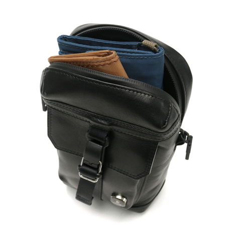 メイン収納部は、細かい小物がコンパクトに収まるサイズ感。小物入れとして使うも良し、ストラップに取り付けてミニショルダーとしても持ち運ぶことができます。素材は、デザイナー屈指のWATER PROOF JES LEATHERを採用しており、ファスナーまで止水仕様となった防水性抜群の設計がポイント。また、本シリーズでは、コインケースやミニウォレットなど合わせてコレクトしたくなる多数のアタッチメントもご用意しております!