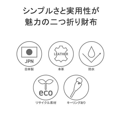 カスタム式のショルダーコレクション『HABIT SHOULDER SERIES』の、ベーシックな二つ折り財布。外側のリングは、同シリーズのショルダーストラップ(品番:092105)やウォレットチェーン、カラビナなどに取り付けが可能。本体はコンパクトながらも、紙幣やカード、小銭が充分に入る収納力を完備しています。素材にはデザイナーがこだわりをもって選び抜いたWATER PROOF JES LEATHERを採用。風合いを残しつつ、環境にも配慮された次世代防水レザーです。