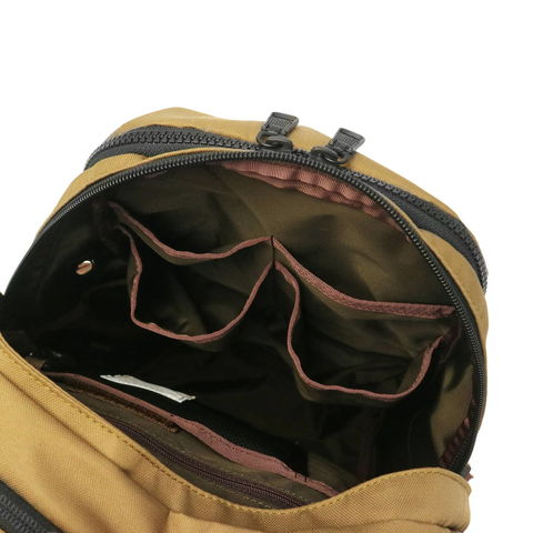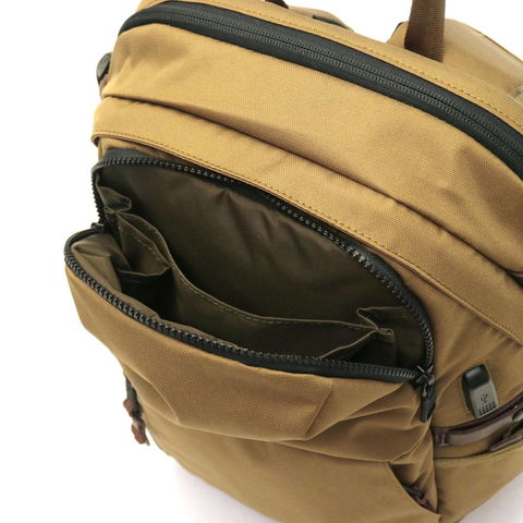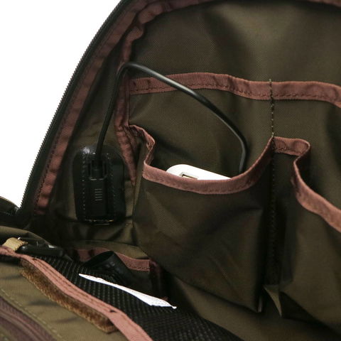 控え目な光沢感とカジュアルなシルエットが特徴の『CORDURA DOBBY 305D』シリーズのデイパック。本体は、背面のファスナーを開けることでマチを拡張できる仕様が搭載。その日のシーンや荷物量に合わせて、お好みで調節可能です。またバッテリー接続ケーブルが付属し、スマートフォン等の機器の充電に便利なUSBポートも装備しています。加えて、外側背面には13インチ対応のPC収納、充実した収納スペースなど見た目以上の機能性を備えたアイテムに仕上がっています。