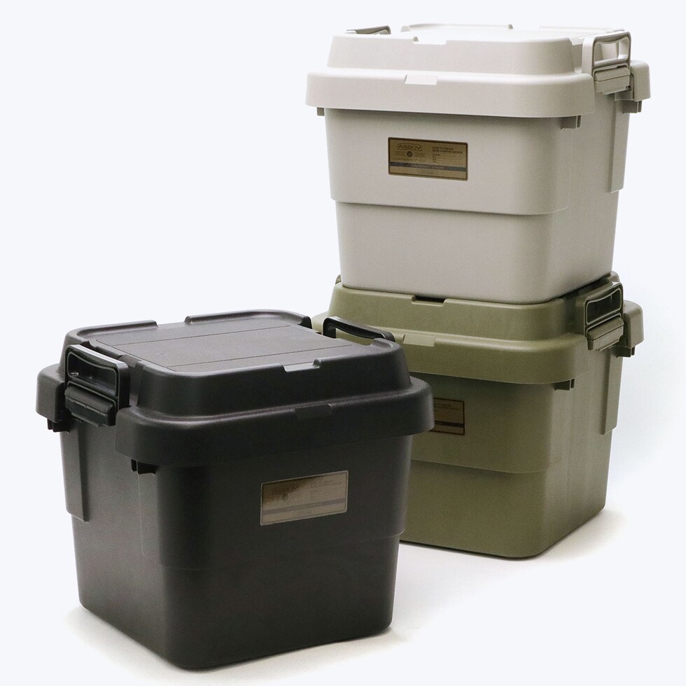 トランクカーゴコンテナからAS2OVのロゴ入りバージョンが登場。こちらは縦型の30Lサイズで、サイズ違いで揃えても溝にハマるようになっており、スタッキングしやすい設計。耐荷重は100kgあり、重いものを載せることができます。フタ部分には荷締めベルトが掛けやすい様にベルトガイドを設け、収納時や車載時などの積み込み時により使いやすく機能性が特徴なコンテナとなっています。