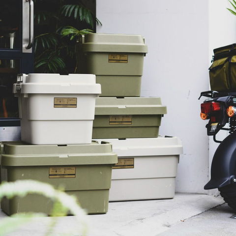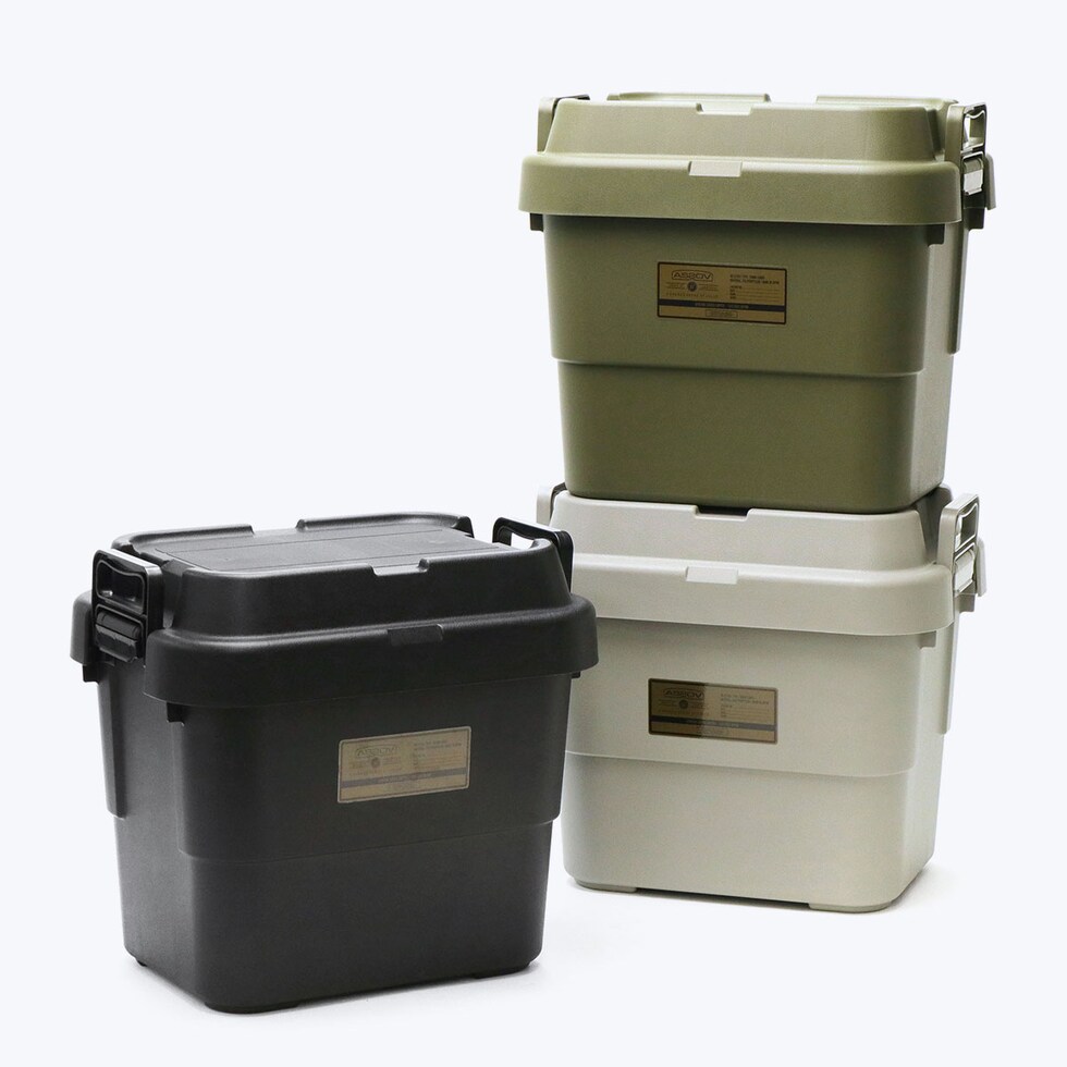 トランクカーゴコンテナからAS2OVのロゴ入りバージョンが登場。こちらは22Lサイズで、サイズ違いで揃えても溝にハマるようになっており、スタッキングしやすい設計。耐荷重は100kgあり、重いものを載せることができます。フタ部分には荷締めベルトが掛けやすい様にベルトガイドを設け、収納時や車載時などの積み込み時により使いやすく機能性が特徴なコンテナとなっています。