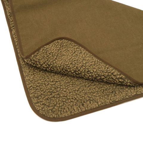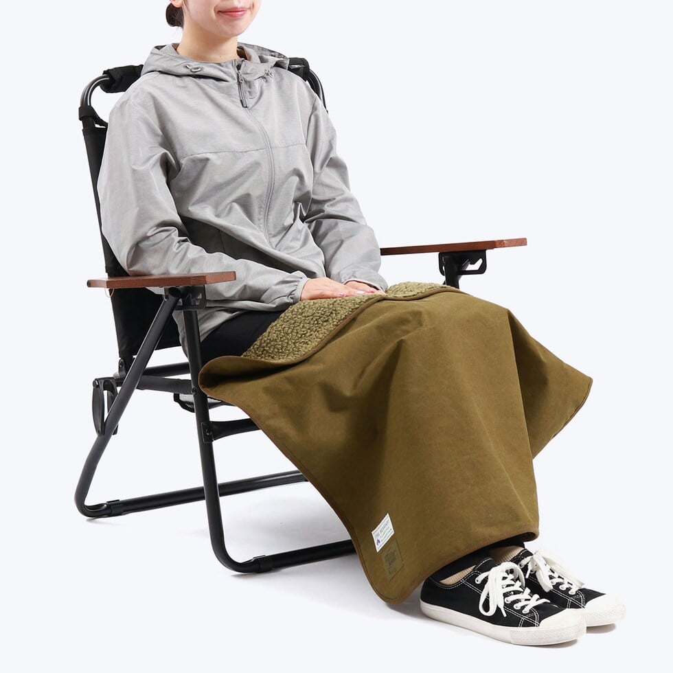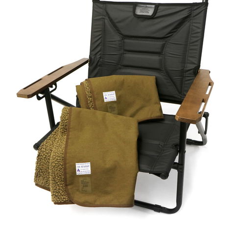 表裏難燃の素材で仕上げたブランケット。表地に使用されているカネカロンは、自己消化性を有した難燃繊維素材なので、燃えにくい特性を生かして作業服やホームテキスタイル用素材などにも活躍している優れもの。裏地のボアには発熱機能を持ち合わせた素材を使用しているため、焚き火などの熱で一度暖かくなると持続性を発揮します。冷え込む夜や涼しい気温の日のアウトドアシーンにぴったりのアイテムとなっています。