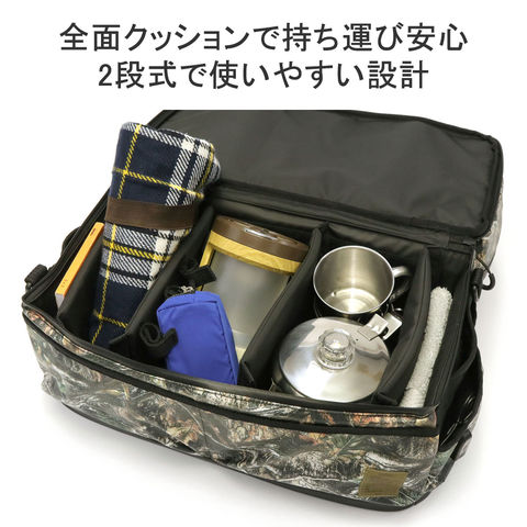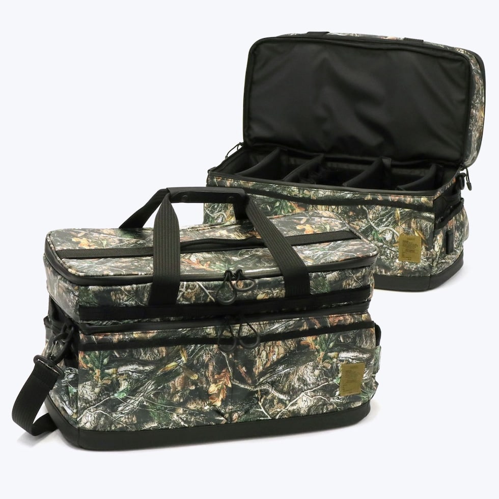 キャンプやアウトドアで大活躍のコンテナボックスに2ルーム仕様のカモフラージュ柄が登場。305Dポリエステルにオリジナルリアルツリーカモをプリントし、ポリカーボネートのコーティングを施したAS2OVオリジナルファブリックを採用し、耐久性に優れた防水力の高い仕上がりに。また、ショルダーストラップも付属しており、持ち運びもラクラク。デザイン性と機能性を兼ね備えたつくりで、快適なキャンプライフをお楽しみいただける人気の商品となっています。