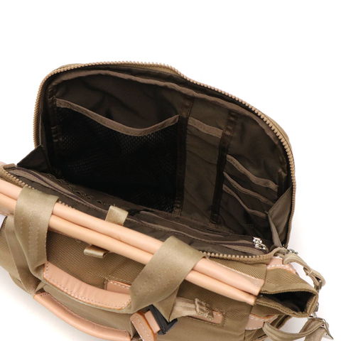 詳細説明 本シリーズに使用する革は、上質で厚みを残した北米産のステアレザーの優良原皮。手間のかかるベジタブルタンニン鞣しにこだわり、仕上げに職人の手作業によるオイルグレージングを施しています。手に触れる度に、革本来の質感や素材そのものが柔らかく変化していく様子を存分に味わっていただけます。本体素材には、タテ・ヨコで規格の違う糸を使用することで程よい光沢を残した深みが特徴的なオリジナルファブリックを採用。上質な革とナイロンのコンビネーションをお楽しみください。